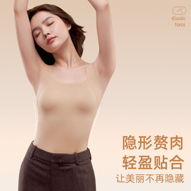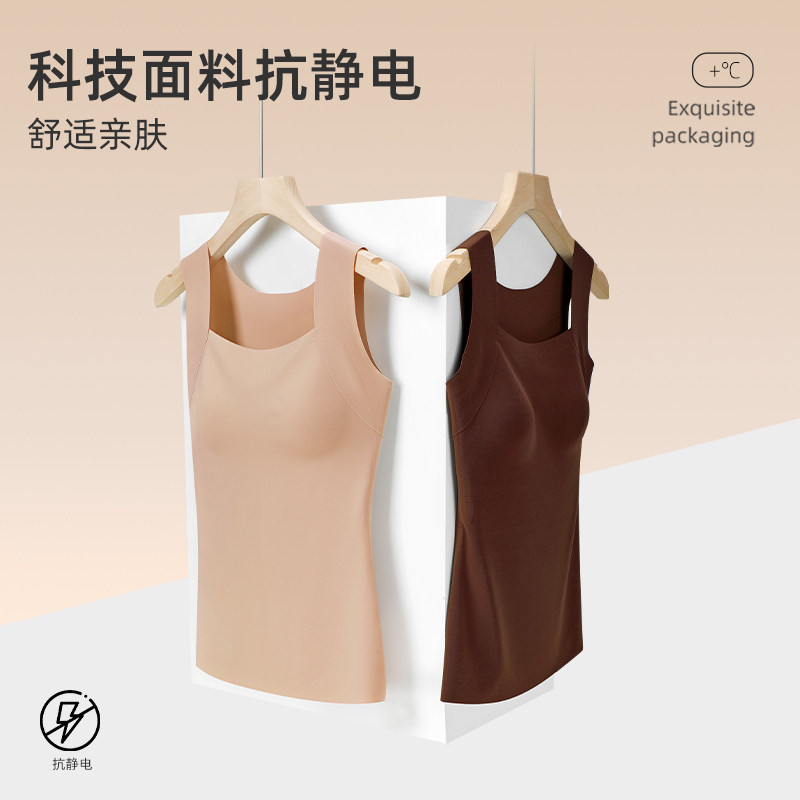 半练方领宽肩保暖背心女秋冬新款带胸垫吊带吸湿发热内搭显瘦打底