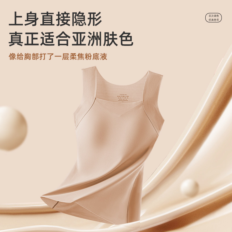 粉底液保暖吊带背心女带胸垫2026秋冬季打底内衣文胸一体肤色隐形