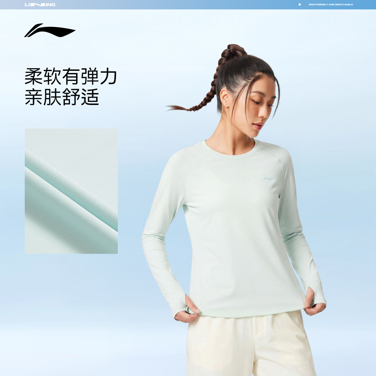 李宁长袖T恤女春季2026新款健身瑜伽女装圆领上衣针织长袖运动服