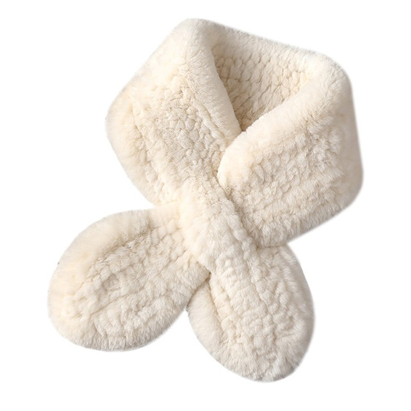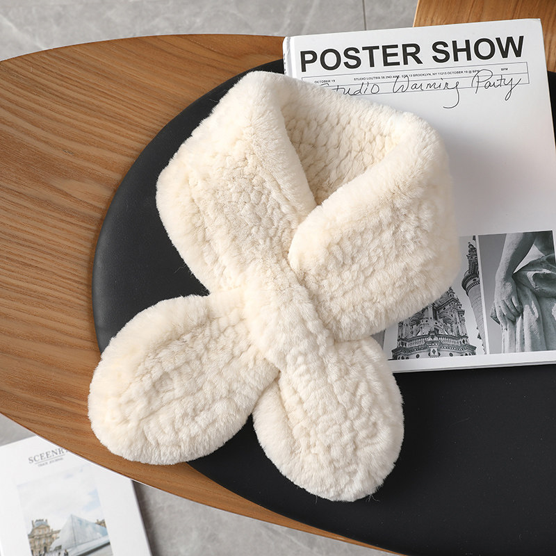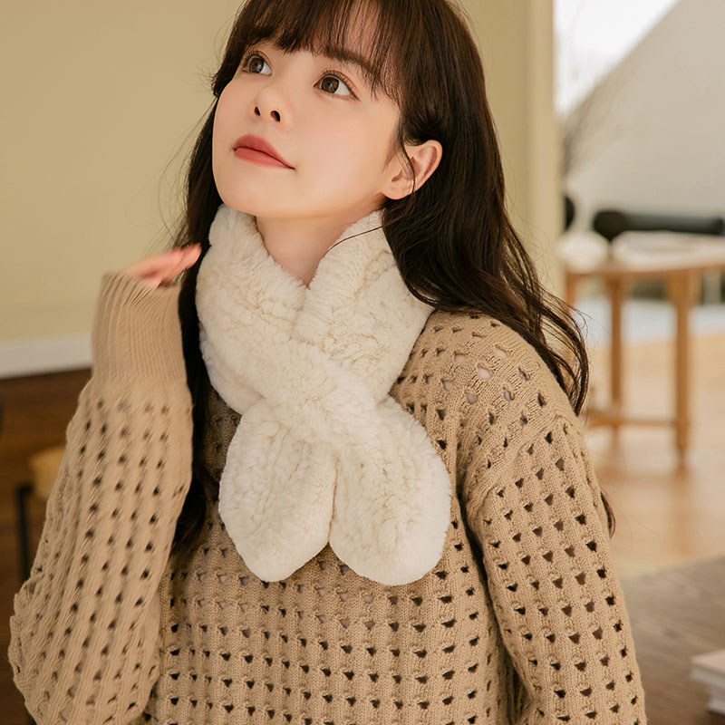 韩版獭兔毛编织领结式气质围巾双面编织冬季女秋冬皮草围脖毛领