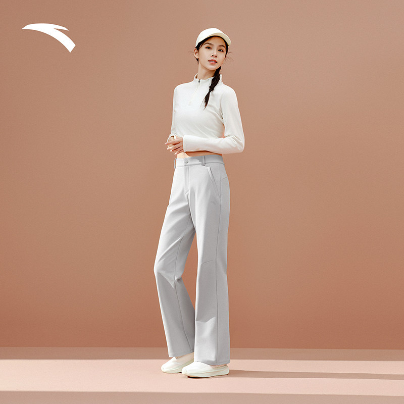 安踏黑色长裤女款秋季轻暖绒修身显腿长直筒微喇西裤子162447503N