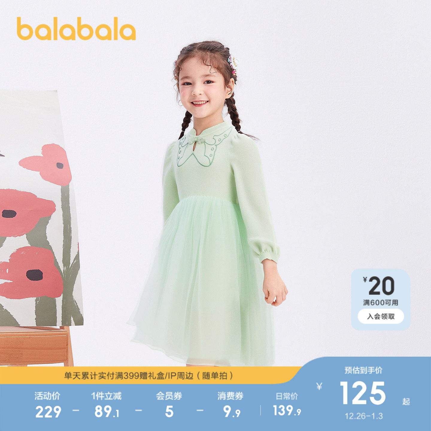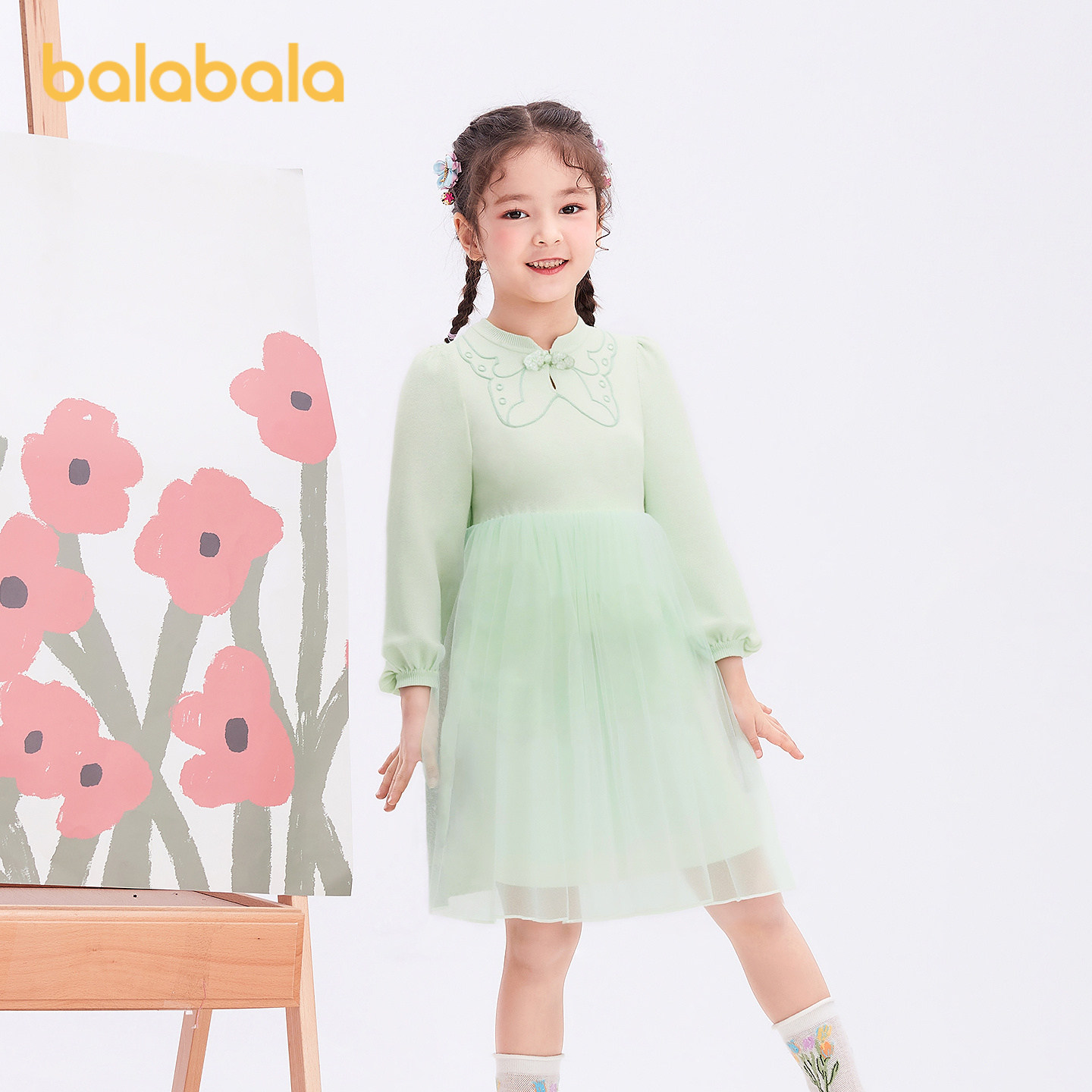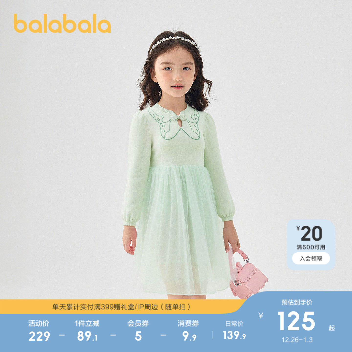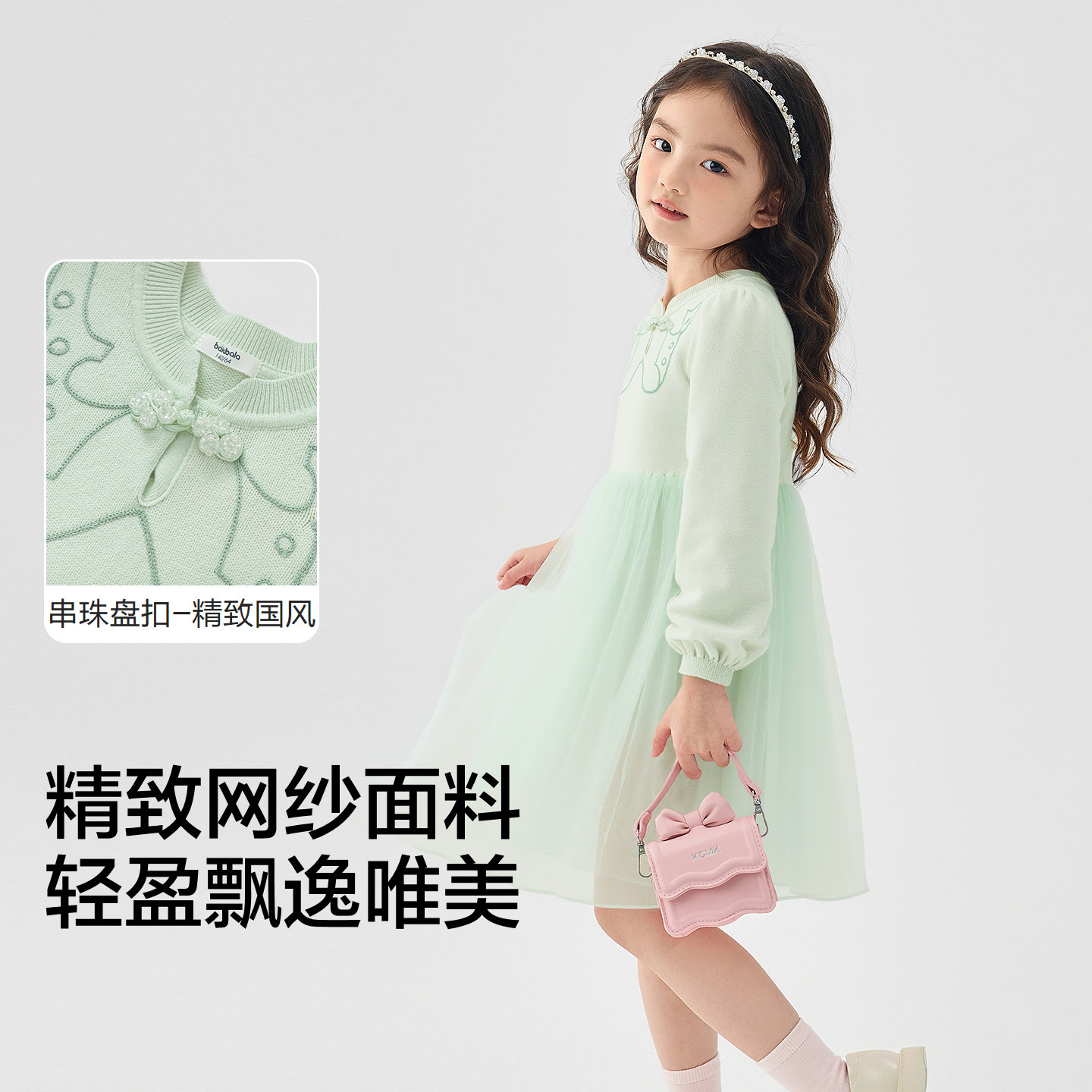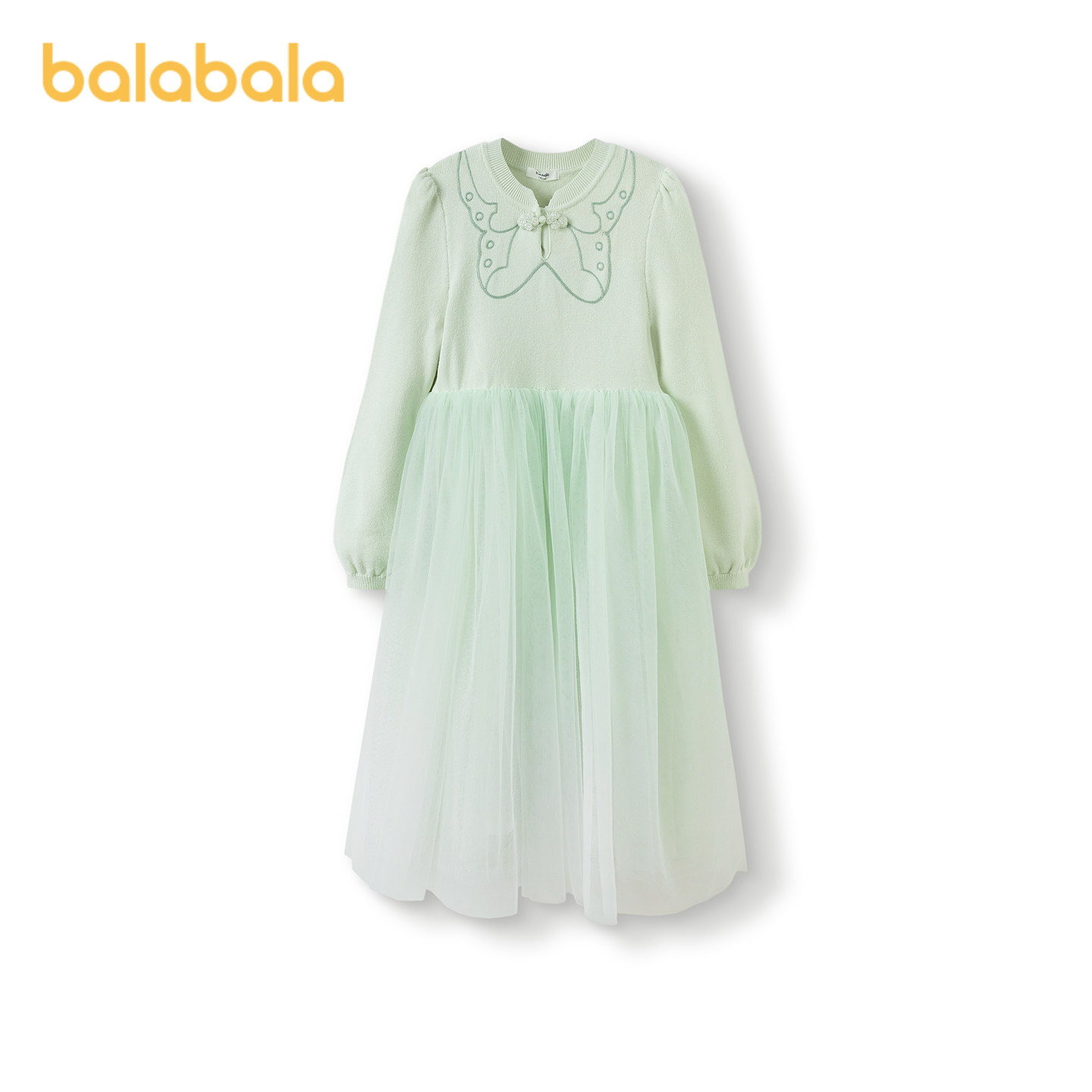 巴拉巴拉童装儿童连衣裙女童秋冬款毛织拼接中大童网纱洋气裙子甜