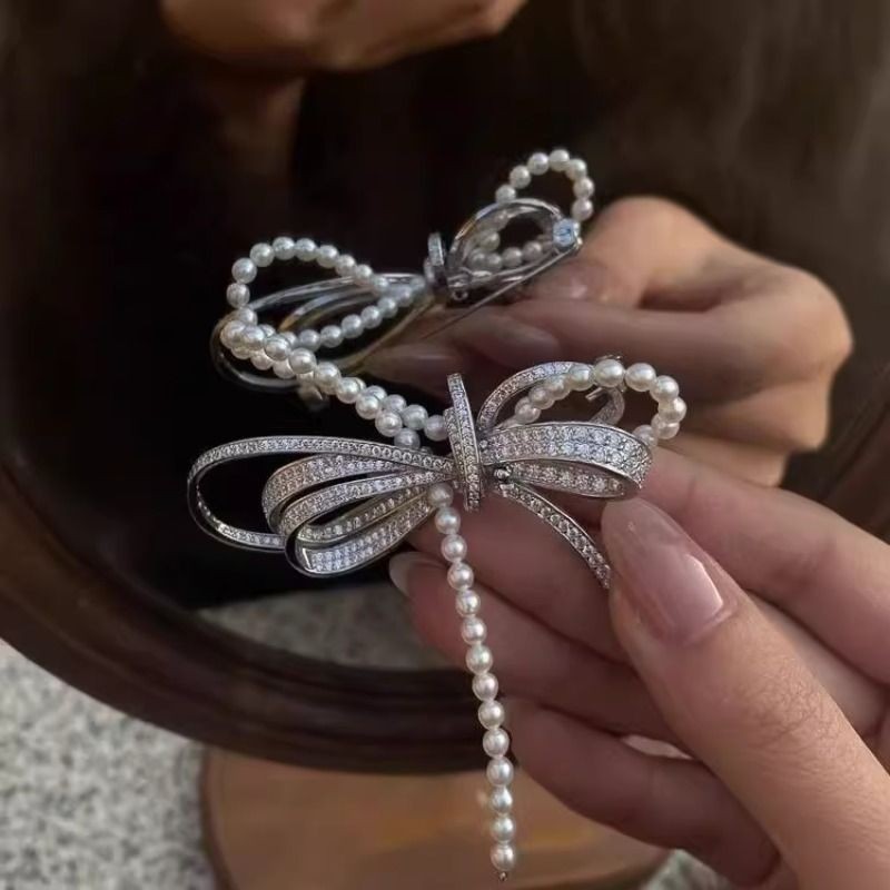 超重工!法式复古优雅珍珠闪钻蝴蝶结胸针高端大气个性衣服配饰女
