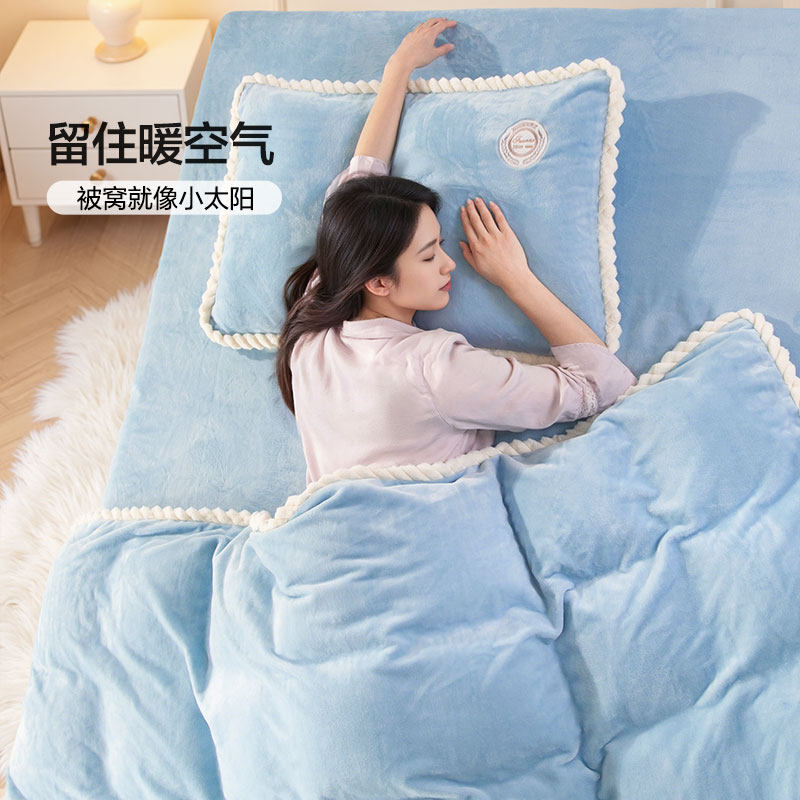 洁丽雅牛奶绒四件套冬季珊瑚绒被套床单加绒毛绒法兰绒床上三件套