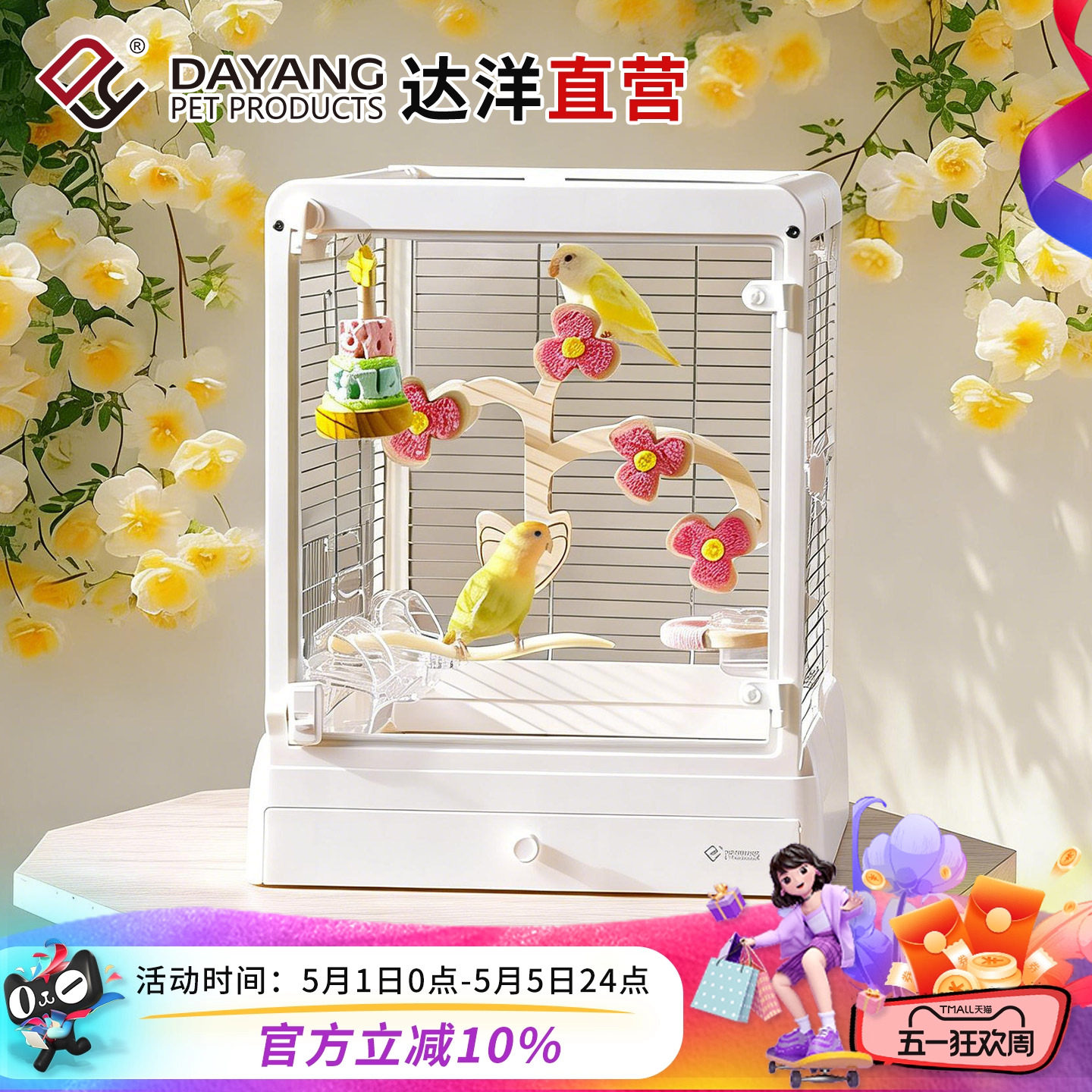 达洋鹦鹉鸟笼子B5001SS全景玻璃304不锈钢家养鸟别墅和尚玄凤虎皮
