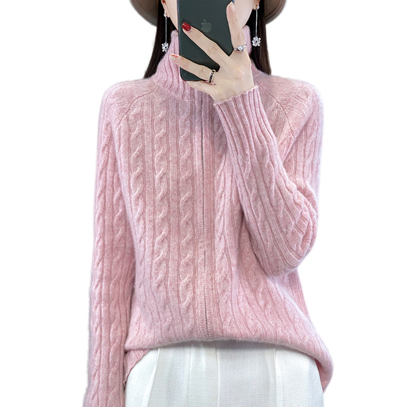 撤标撤柜(A)女春秋款拉链螺纹高领显瘦大码女装秋冬针织开衫毛衣