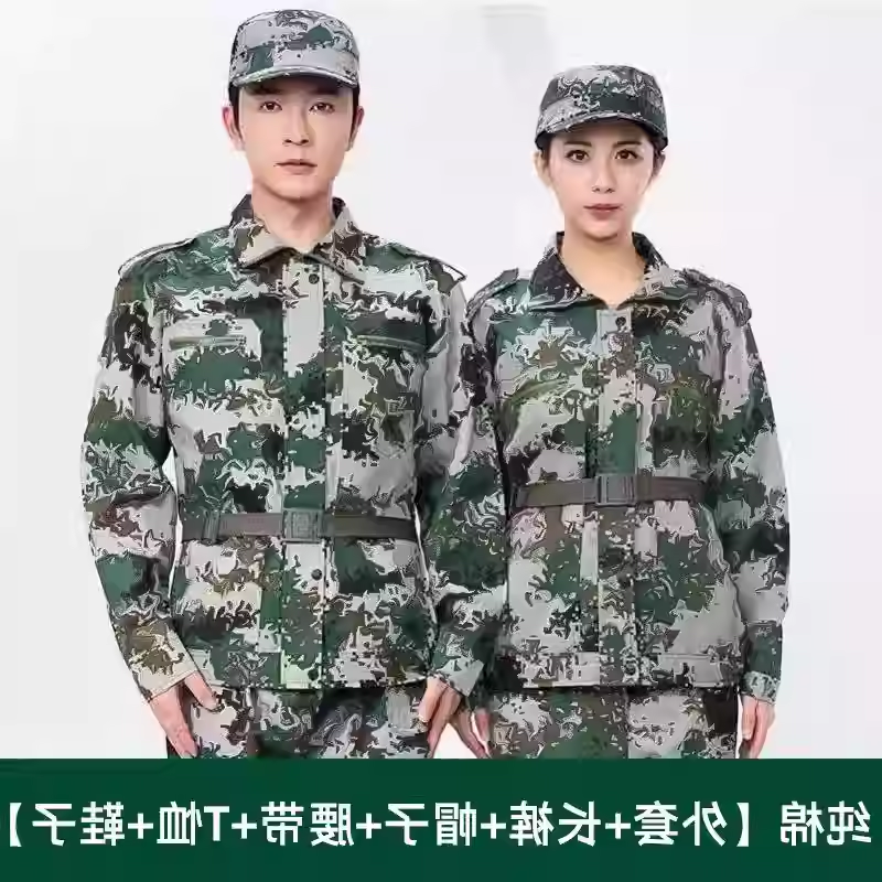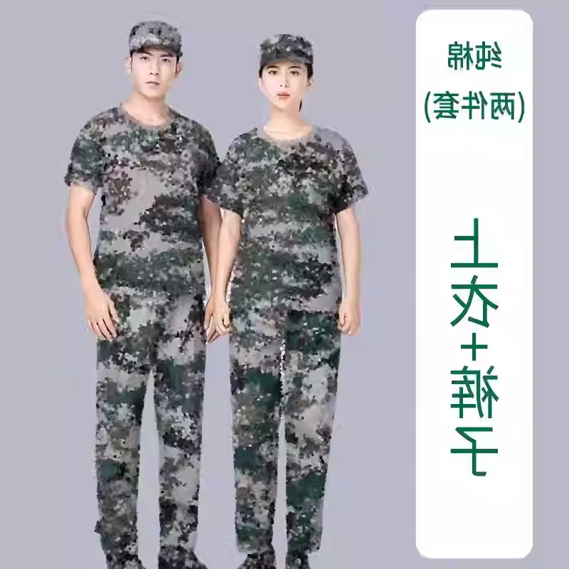 迷彩服套装男初高中大学生军训服长袖训练服绿色军训衣服女纯棉夏