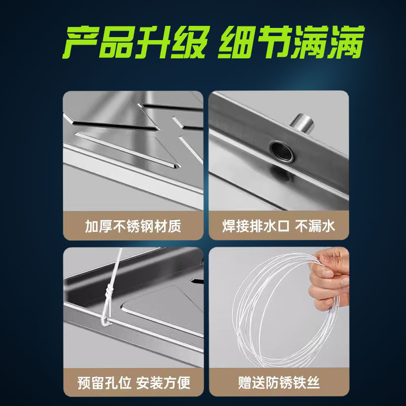 空调接水盘滴水盘外机漏水盘接水槽带排水不锈钢1P1.5P2P3P5P