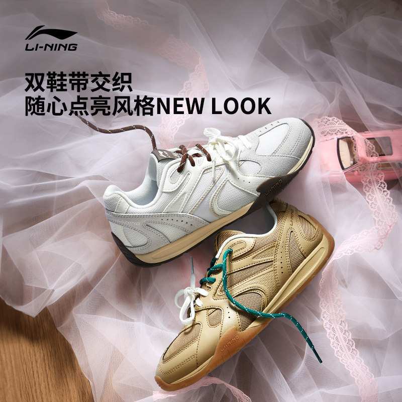 李宁菲林Retro丨休闲鞋女鞋冬季新款芭蕾德训鞋薄底银色运动鞋男