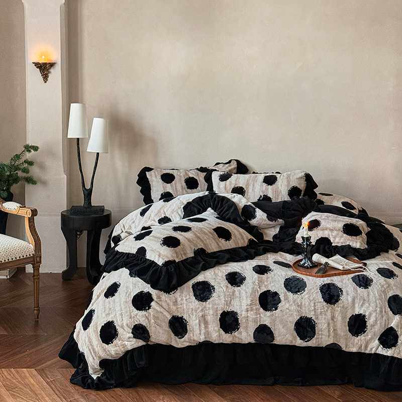 【香龄优品】美拉德风加厚保暖雪貂绒牛奶绒花边款波点四件套
