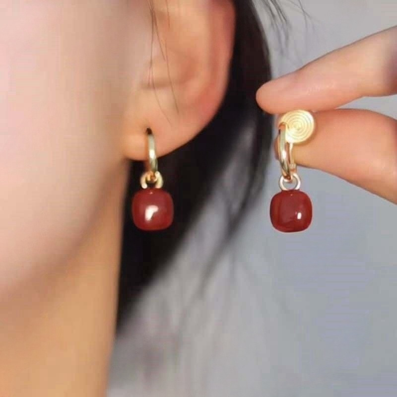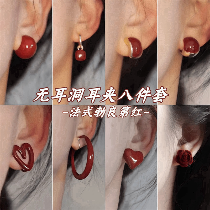 人气爆款!法式勃艮第红复古蚊香盘耳夹女耳环简约气质无耳洞耳饰