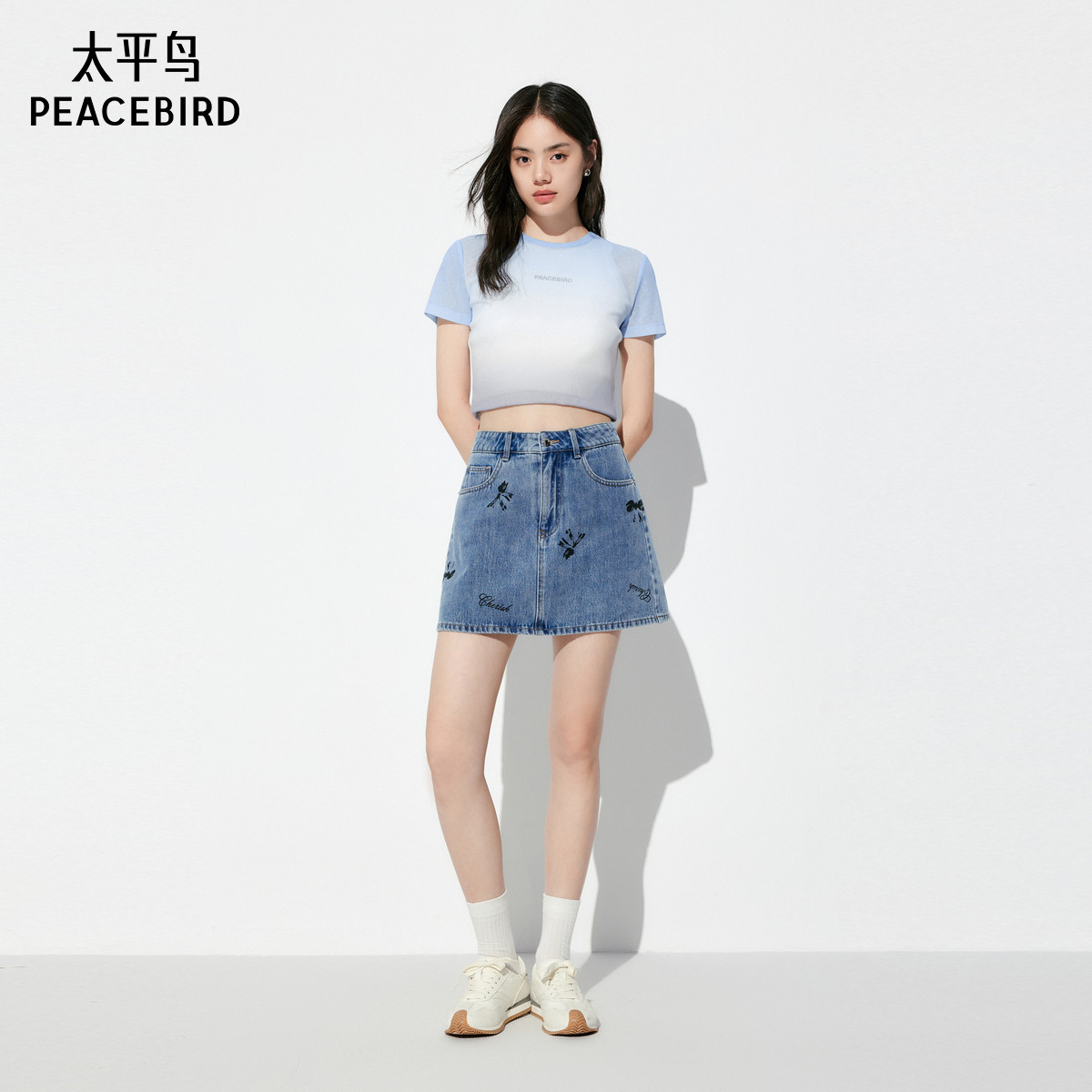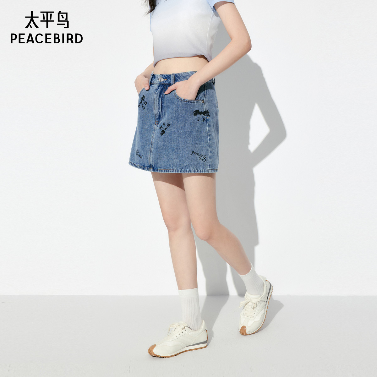 太平鸟 印花牛仔半身裙夏季韩版时尚短款半身裙直筒a字裙