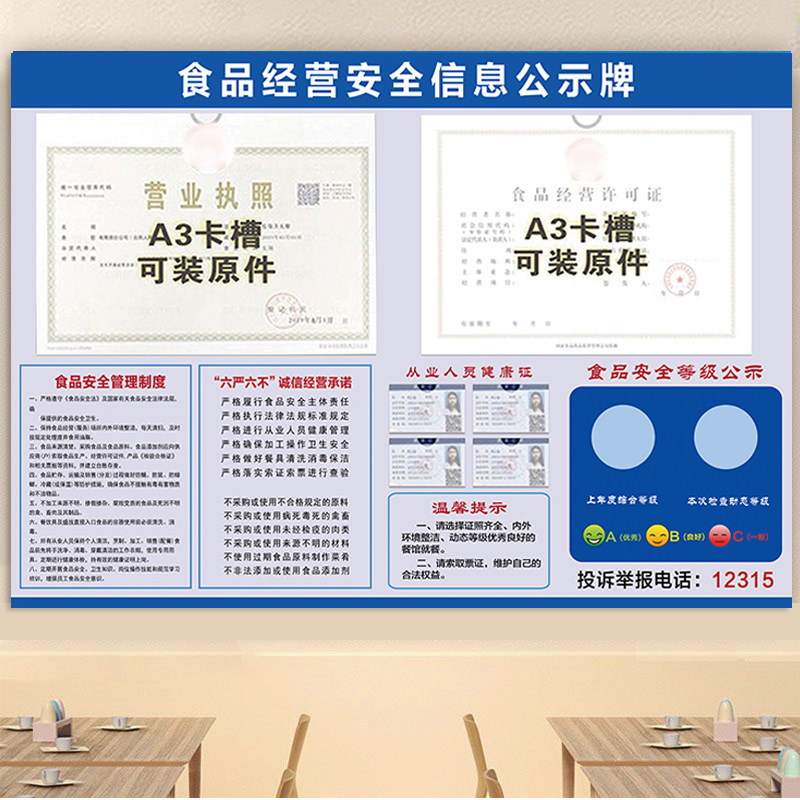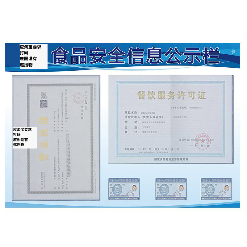 食品安全信息公示栏餐饮服务营业执照展板上墙pvc板食品卫生经营许可证三合一框个人健康证公示卡展示框墙贴