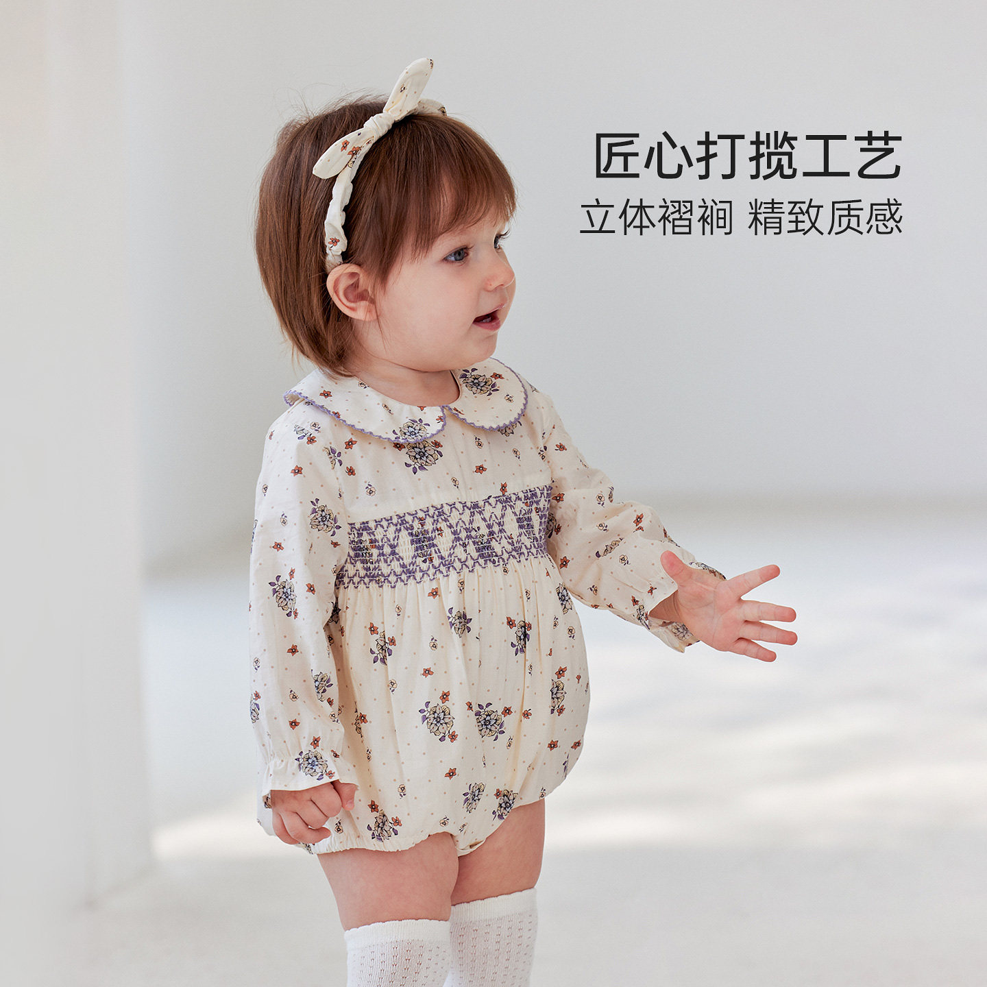 babycare冬季保暖山茶花连体衣宝宝包屁衣新生儿爬服外出婴儿衣服