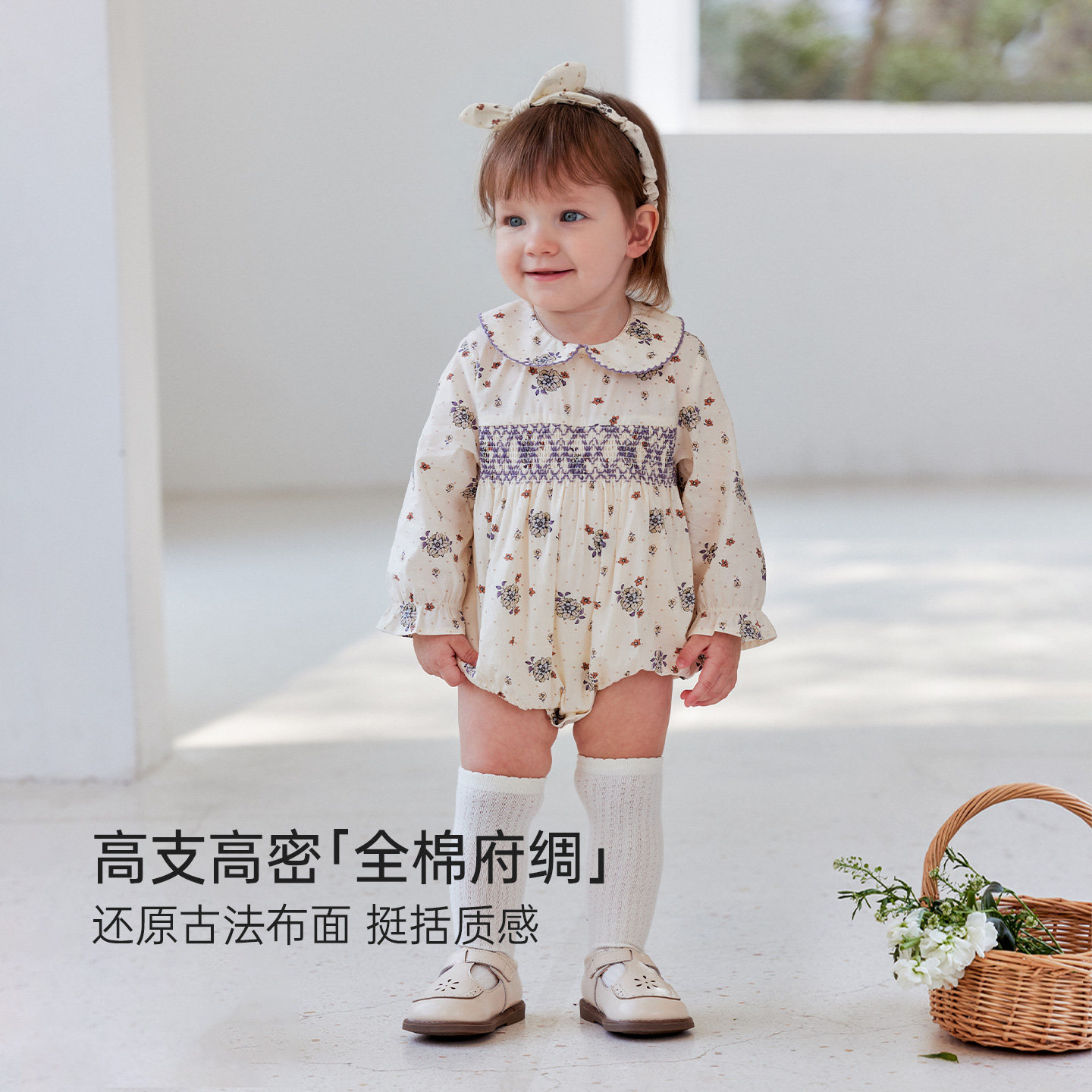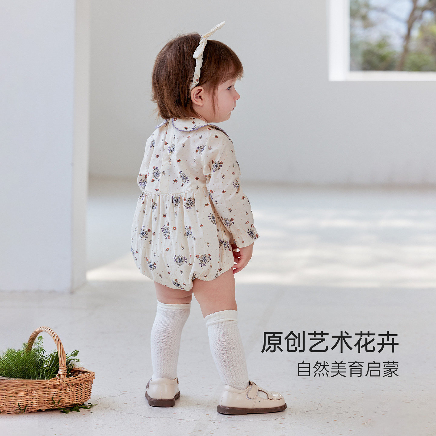 babylove女宝宝包屁衣春秋款纯棉三角哈衣婴儿文艺外出服花叶扶疏