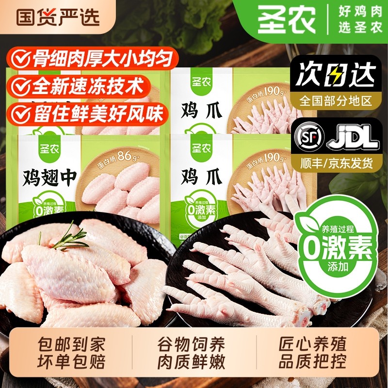 圣农无抗鸡爪鸡翅中冷冻出口级生鲜半成品鸡肉烧烤卤鸡翅清真食材