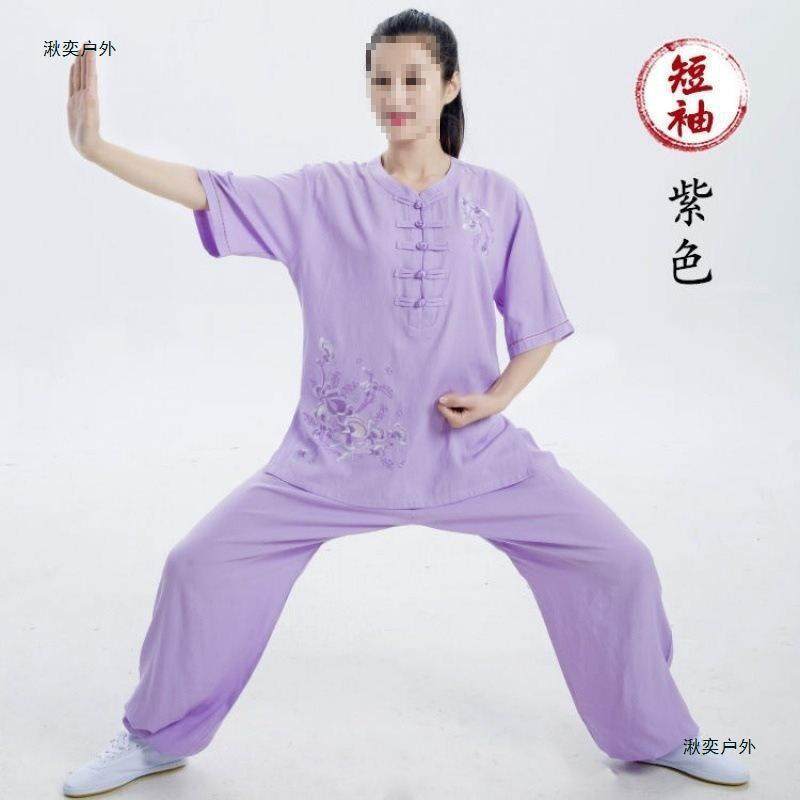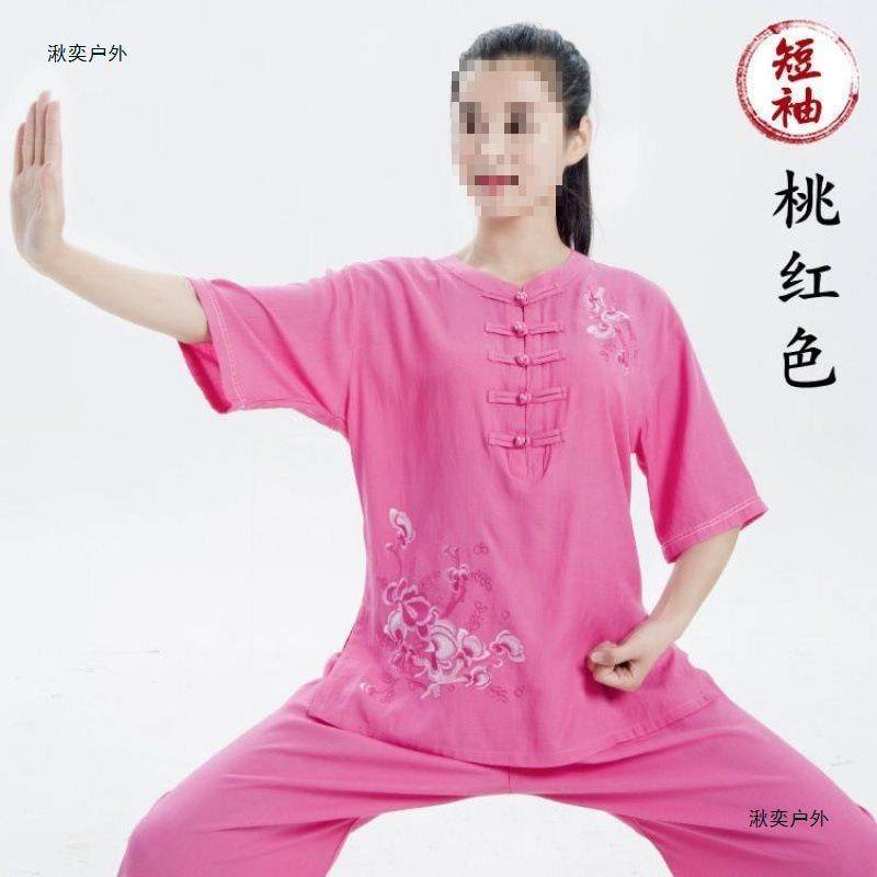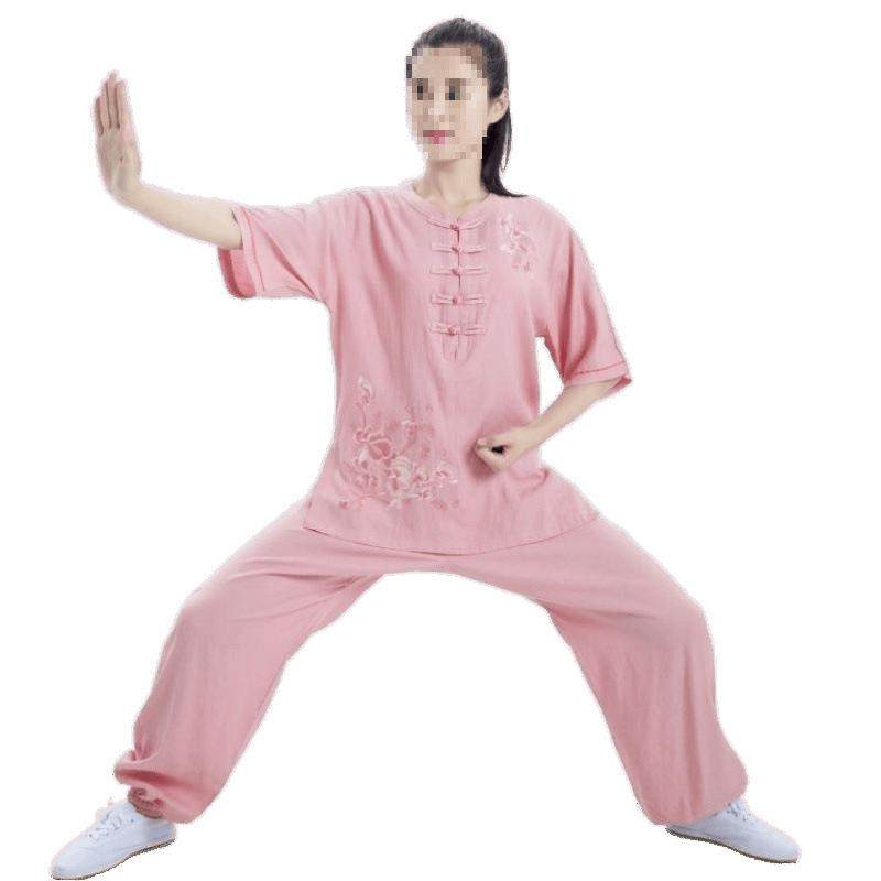 太极拳服装夏季薄款绣花太极服女短袖棉麻武术练功服新款套装