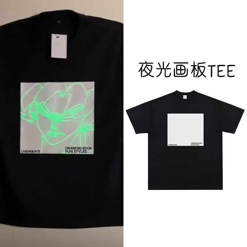 爆款重磅纯棉T恤中性风【夜光画板Tee】趣味荧光绿印花短袖ins