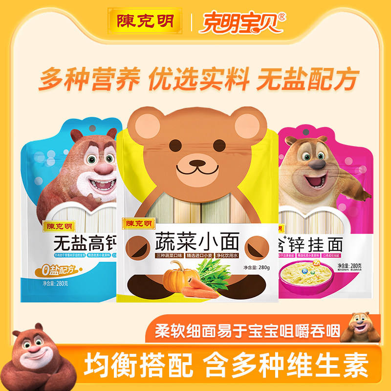 陈克明儿童面条宝宝挂面280g无盐无添加蔬菜杂粮钙铁锌婴儿营养面