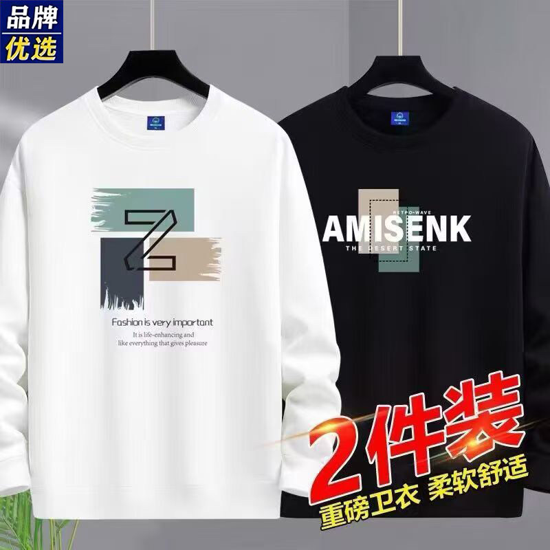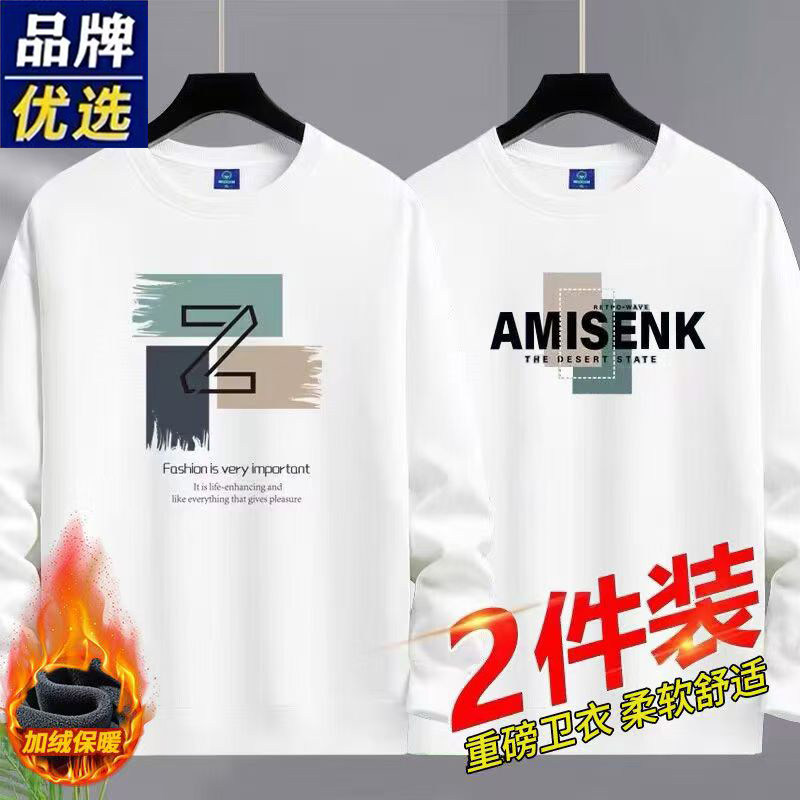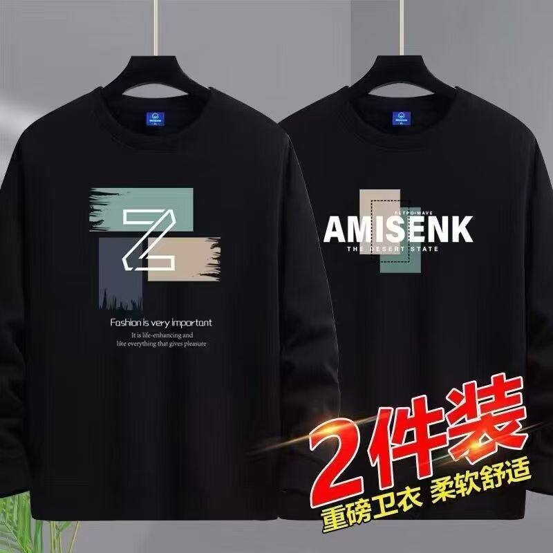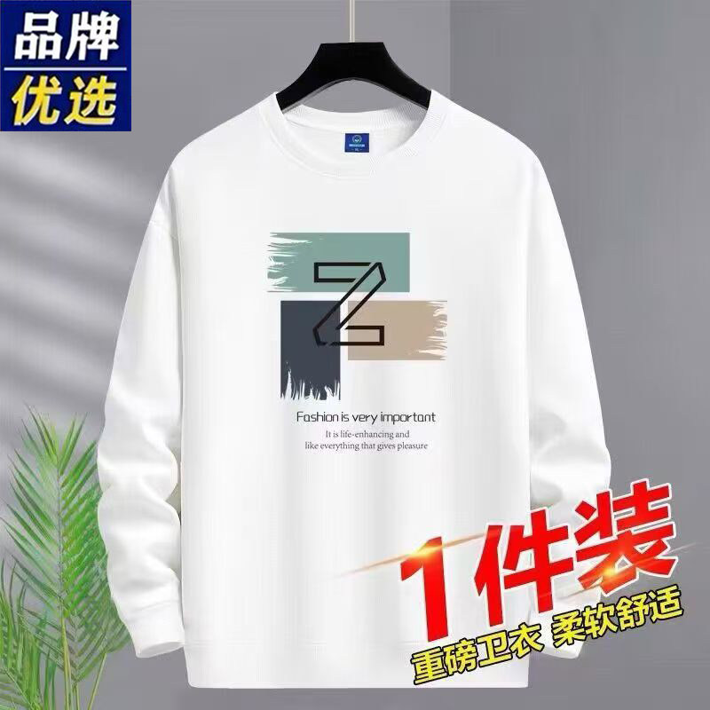 纯棉卫衣男士春秋季宽松圆领套头加绒长袖T恤打底衫男装百搭上衣