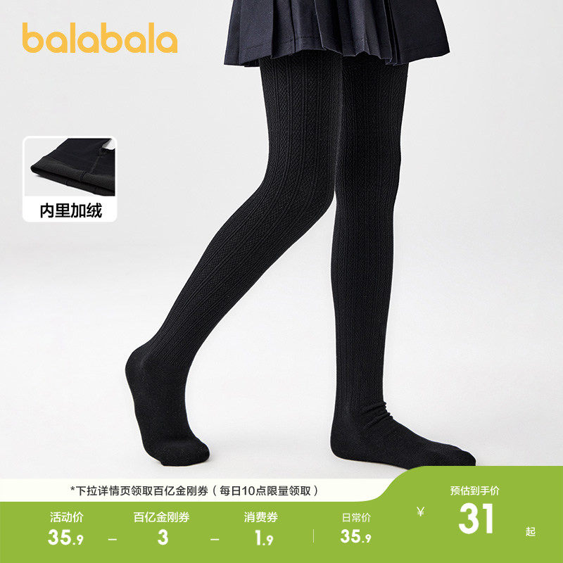 【balaOne】巴拉巴拉儿童连裤袜子打底裤女童舞蹈袜薄绒弹力保暖