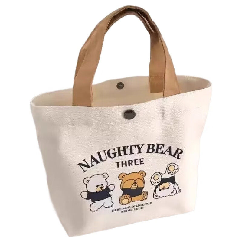 新款小熊帆布包女士上班学生手提包手拎便当饭盒收纳礼品袋帆布袋