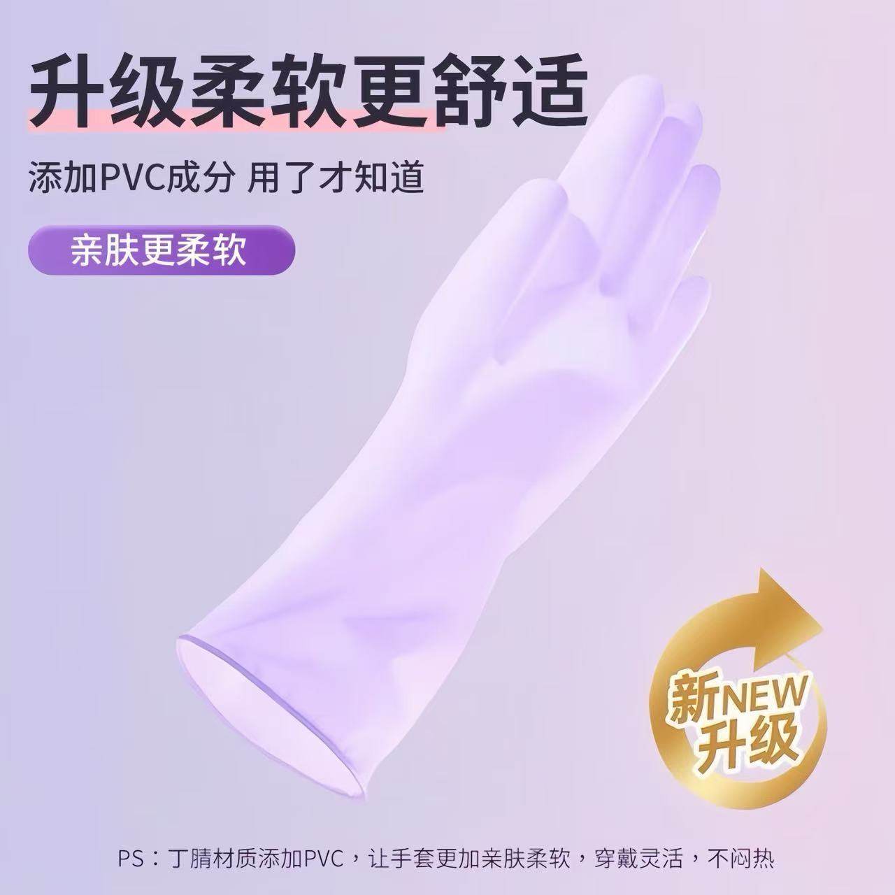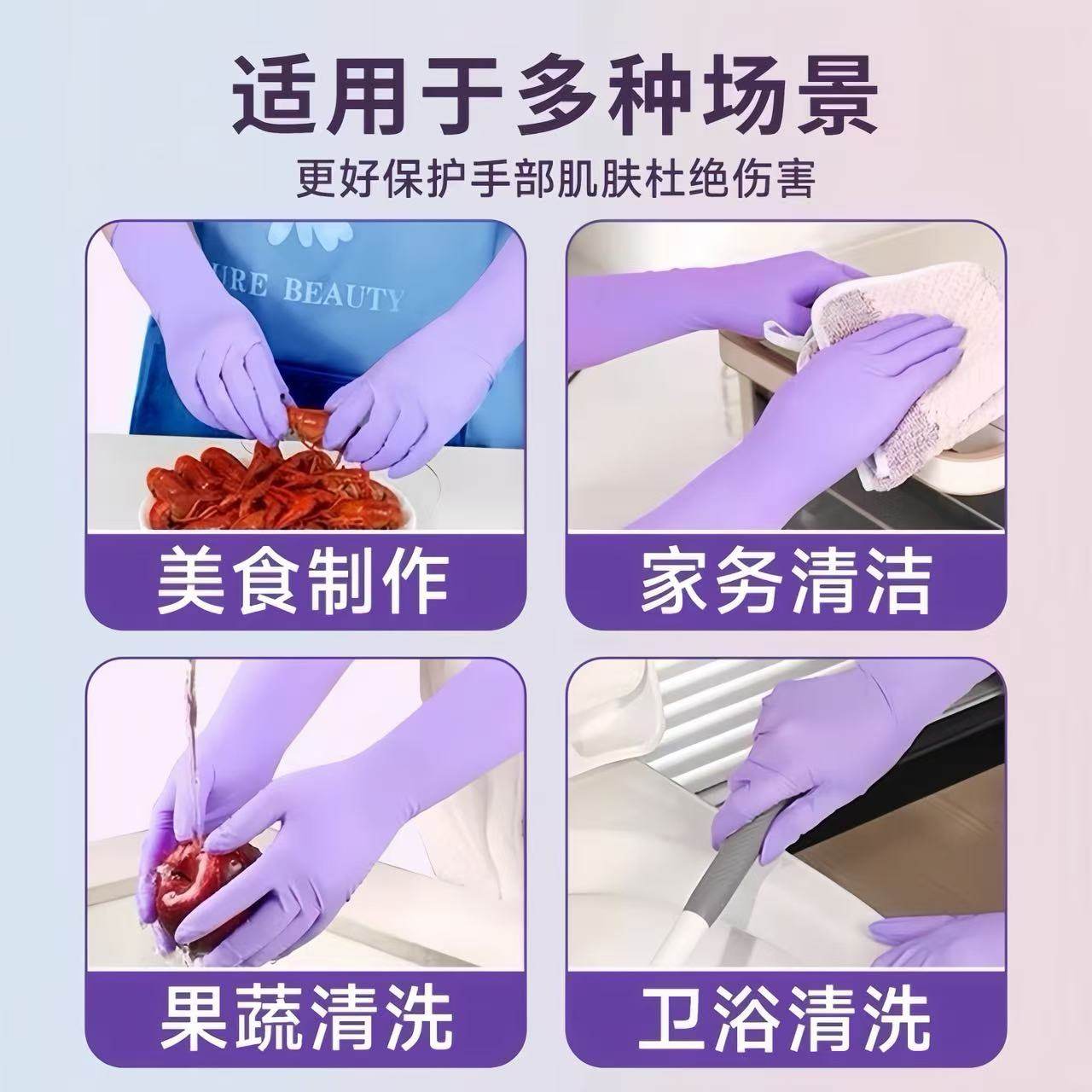 丁腈手套一次性乳胶食品级橡胶家务洗碗厨房加厚耐用加长防护紫色