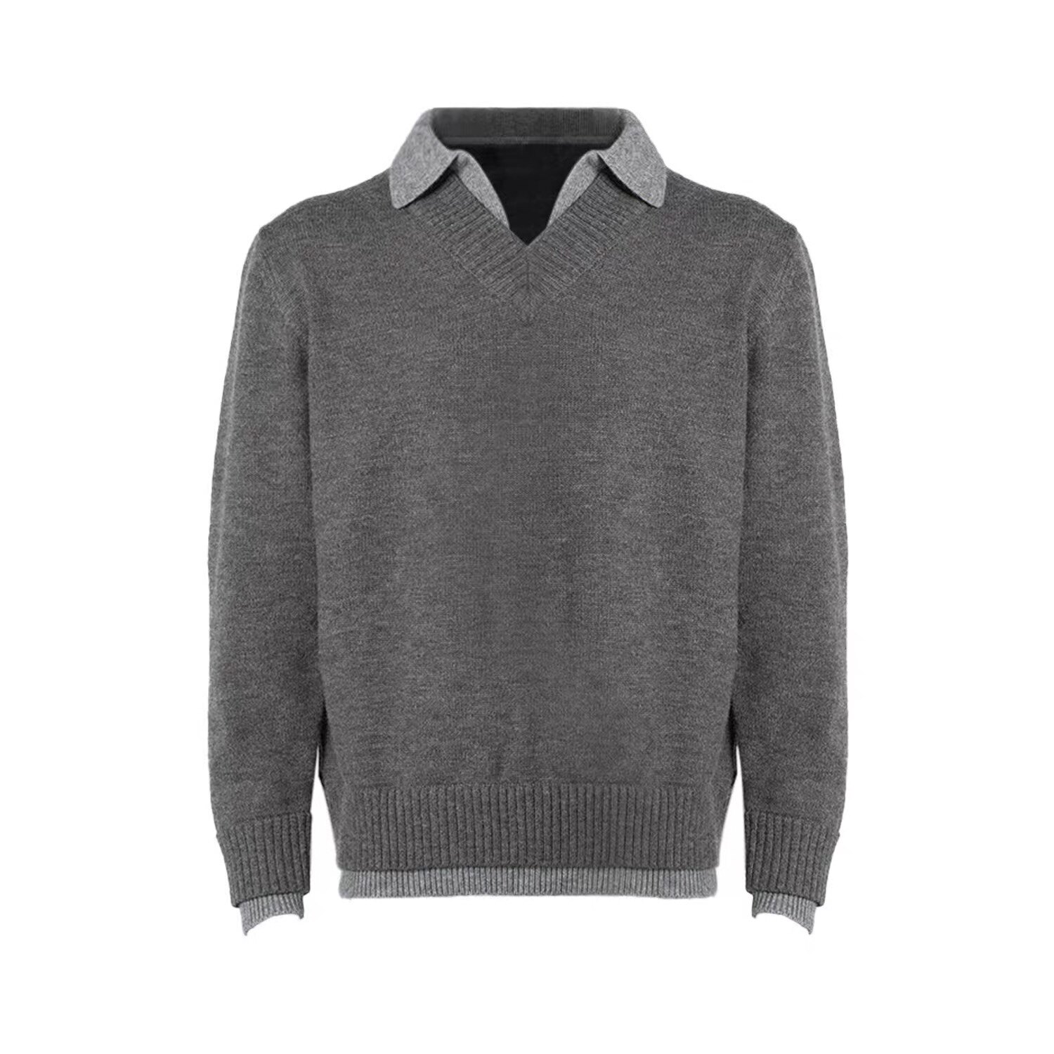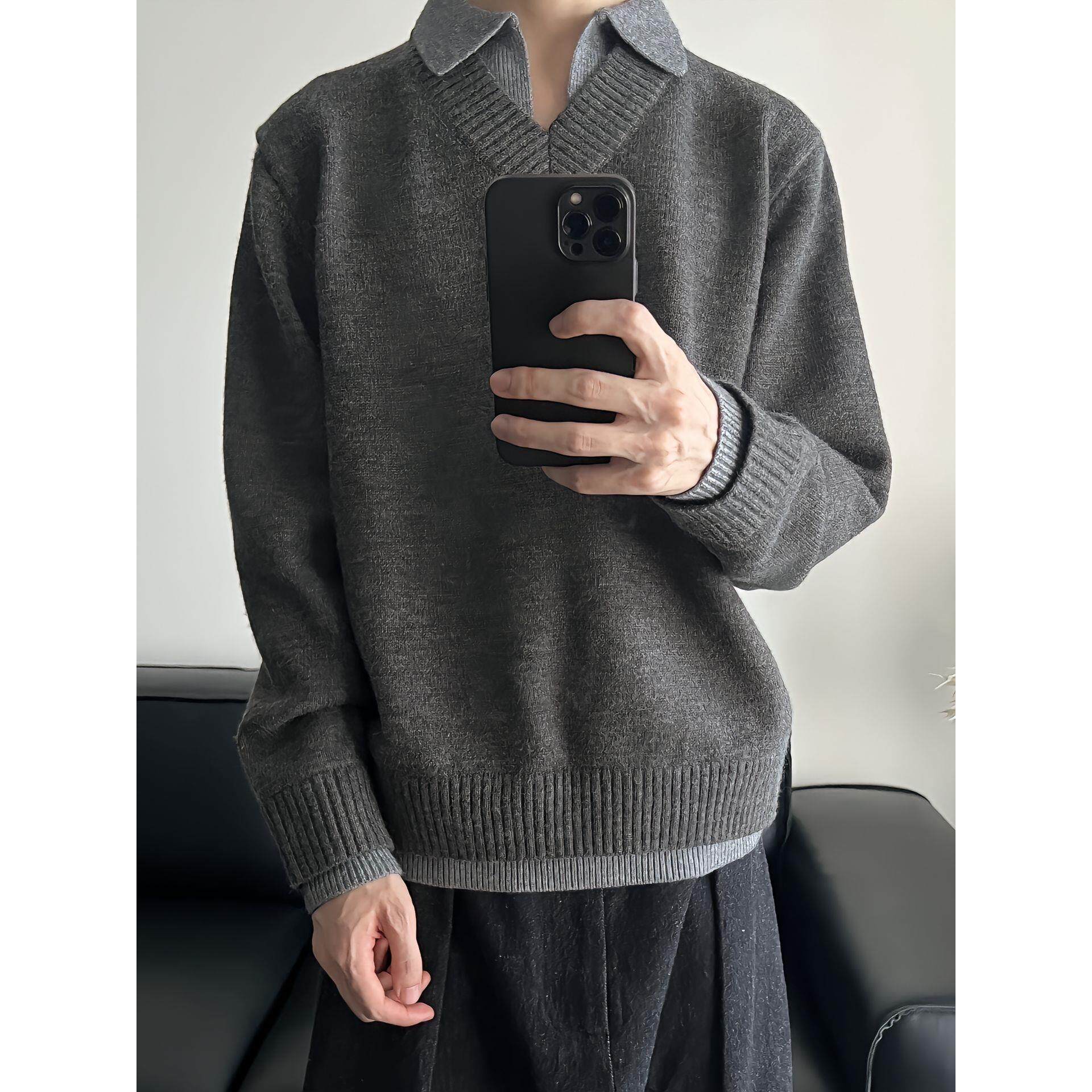 ASSDY|绵羊毛900G重磅翻领假两件毛衣男2025冬轻熟风休闲针织线衣