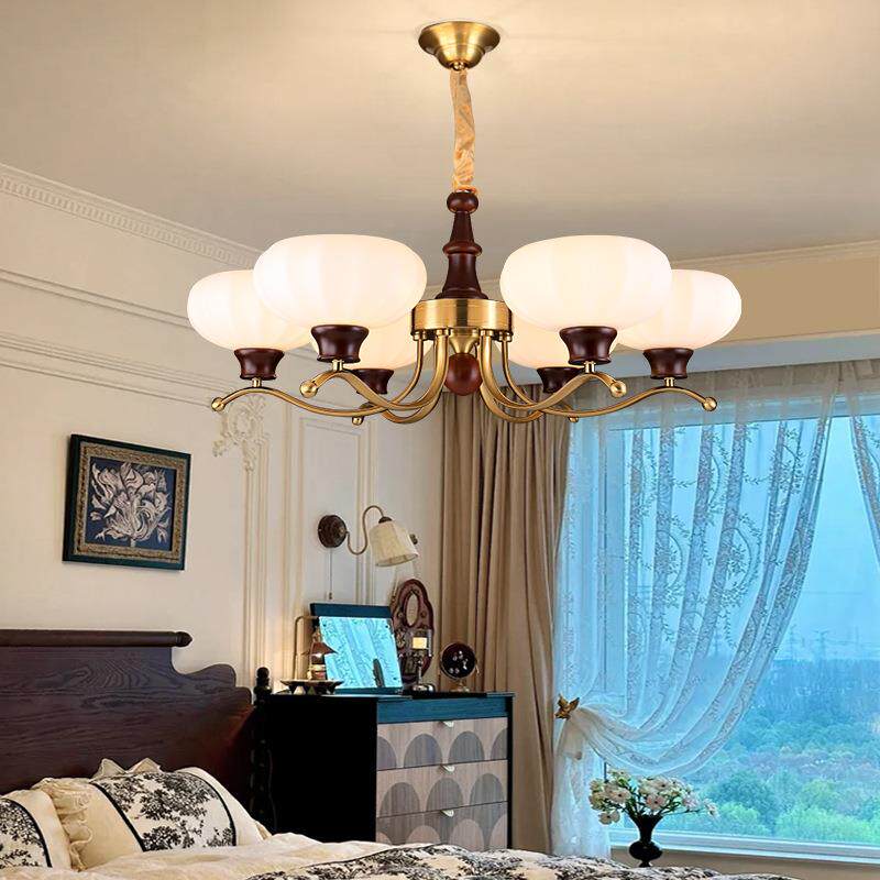 中古风吊灯实木铜本色全光谱客厅吊灯卧室餐厅吊灯床头壁灯