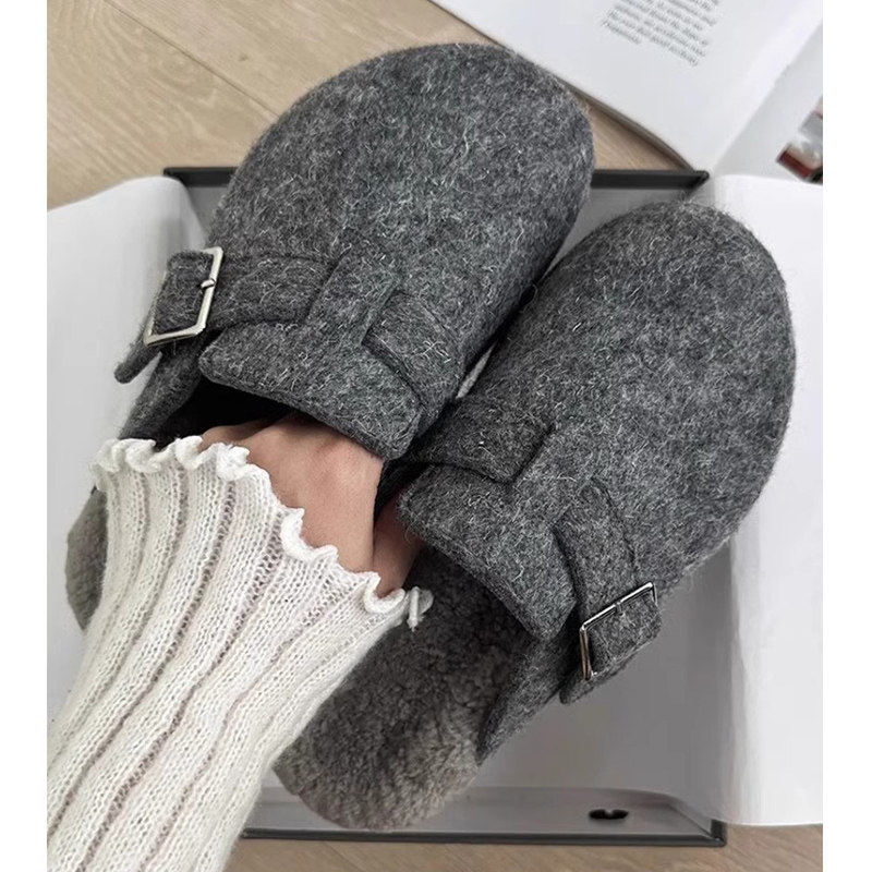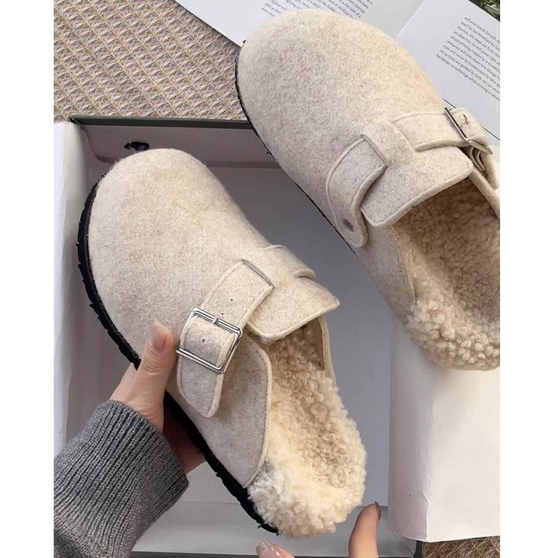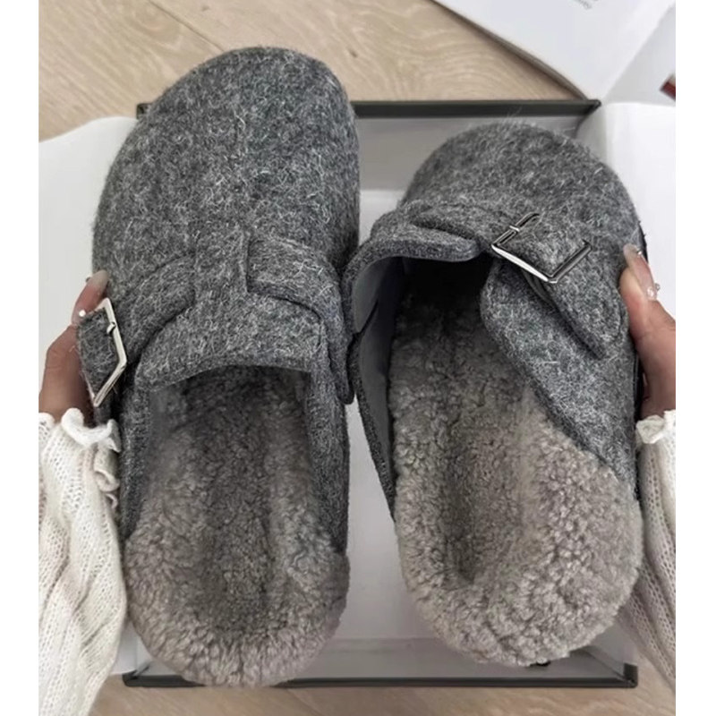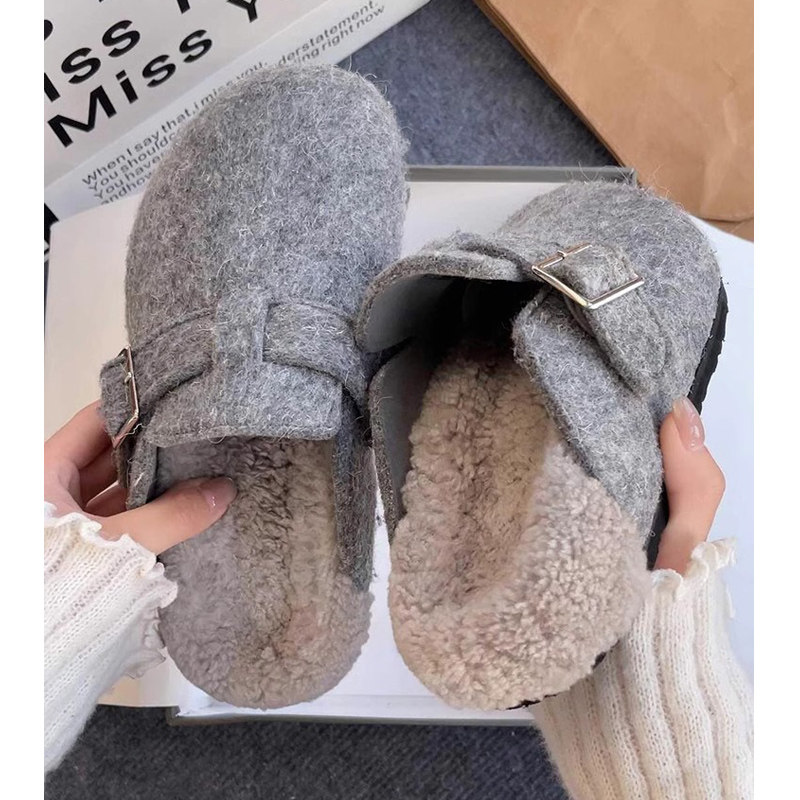 小众厚底勃肯鞋毛毛拖鞋女外穿2025秋冬新款加绒包头懒人包头半拖