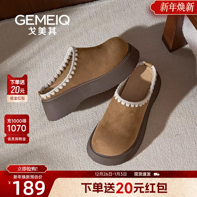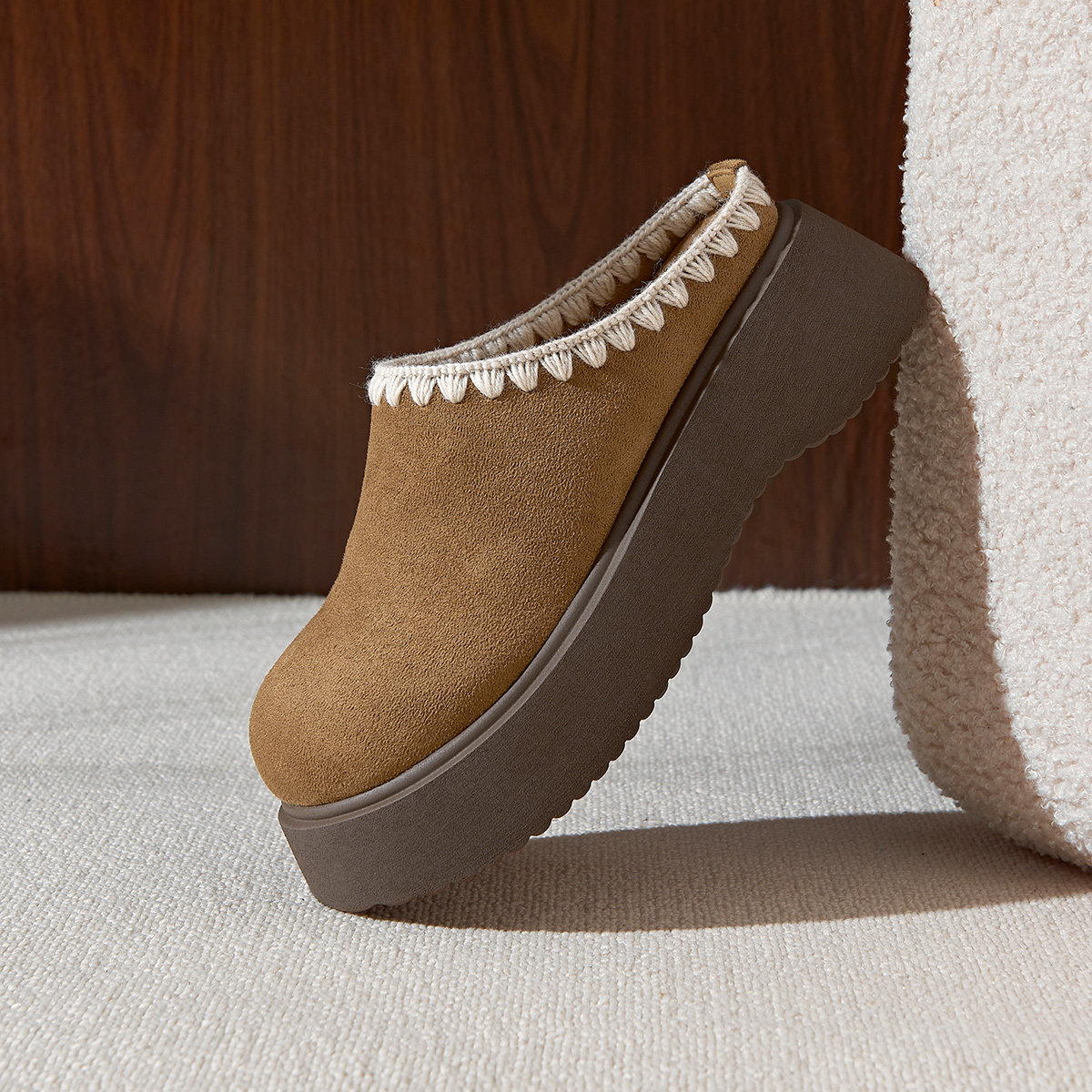 厚底勃肯鞋女2025新款冬季女鞋加绒半拖一脚蹬穆勒鞋子增高博肯鞋