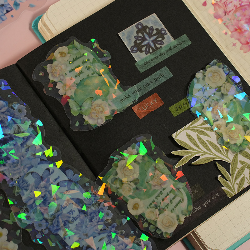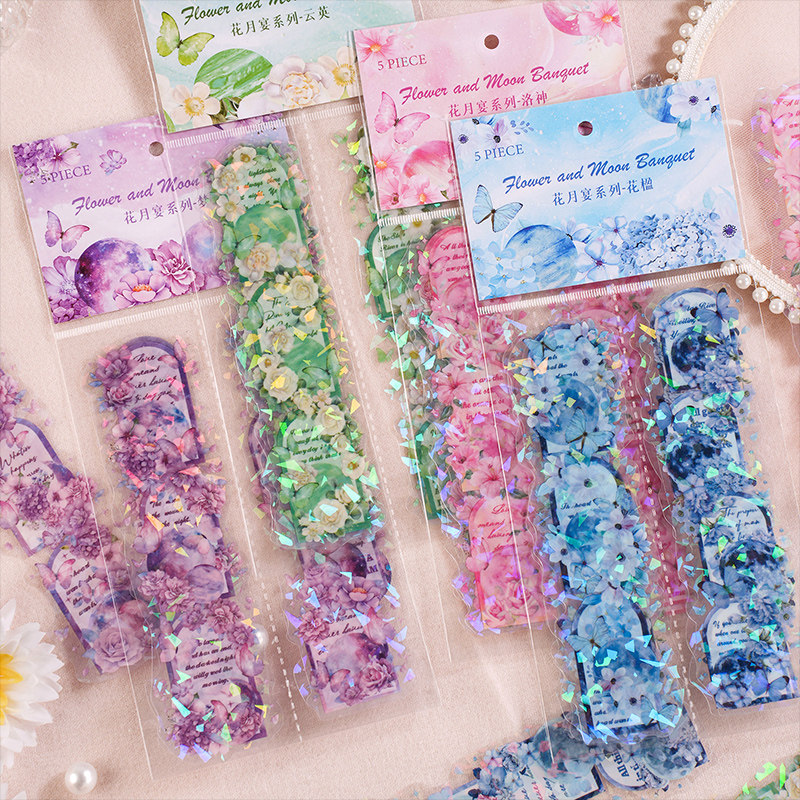 花月宴系列PET闪膜花朵长条贴纸diy手帐成长手册相册手机装饰素材