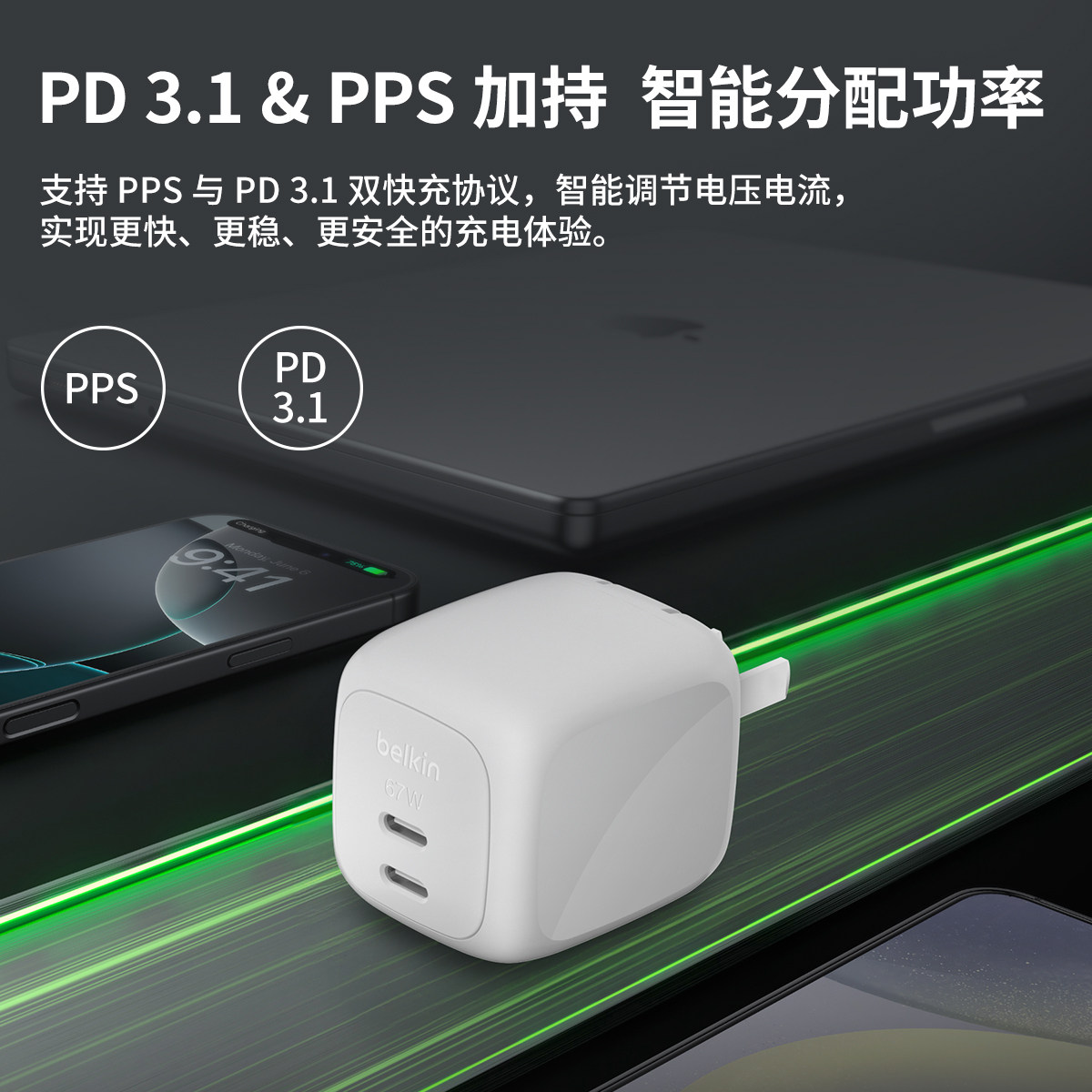 Belkin贝尔金67w双口Typec充电器氮化镓快充 ZSP零耗智芯充电头适用苹果16手机iphone17promax笔记本电脑iPad