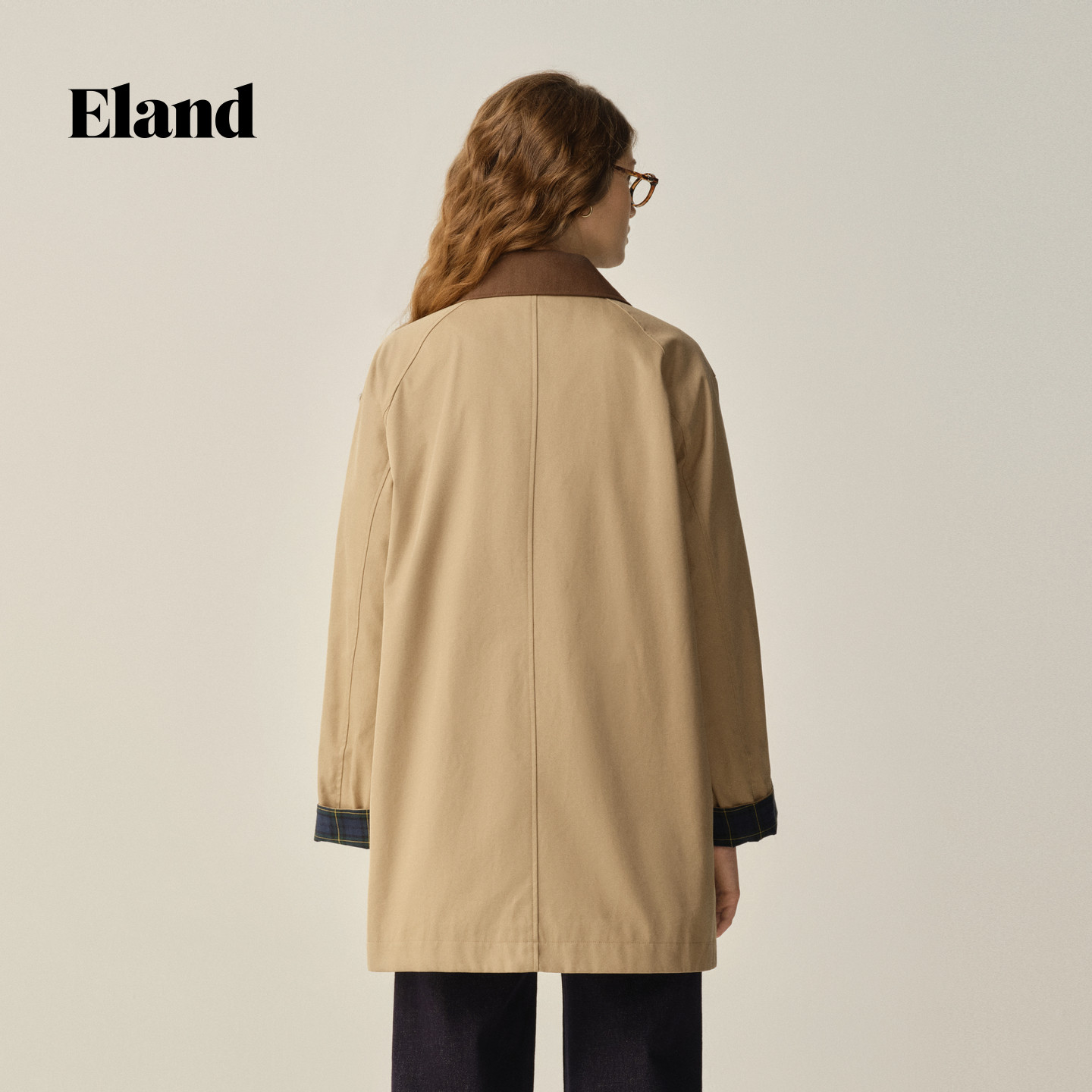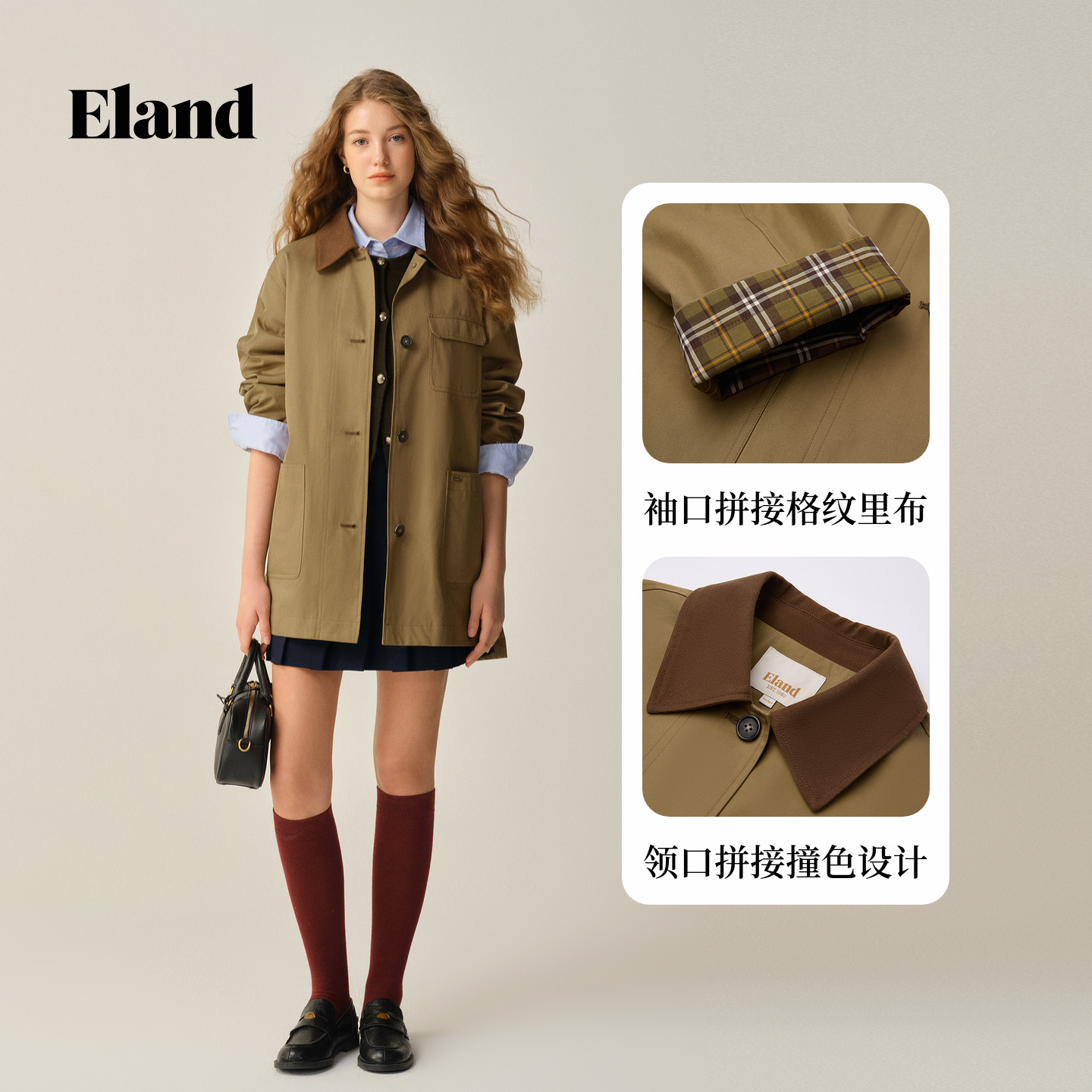 【无氟防水】Eland衣恋风衣女单排扣纯棉舒适外套2025春季新款