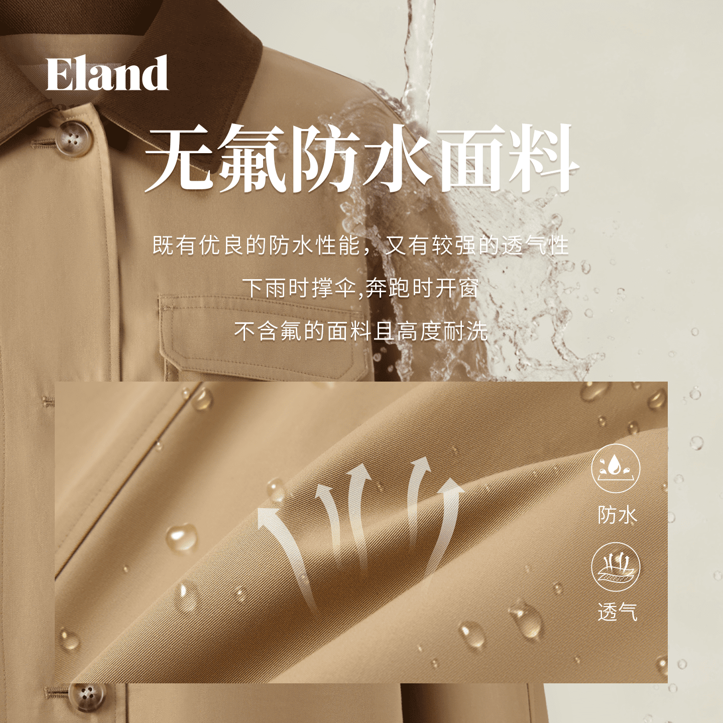 【无氟防水】Eland衣恋风衣女气质中长款单排扣外套2025冬季新款