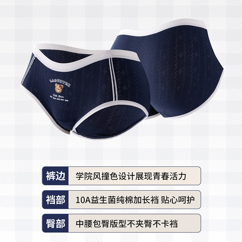 雅鹿英伦风内裤女士纯棉100全棉抗菌加长档2026新款少女生三角裤