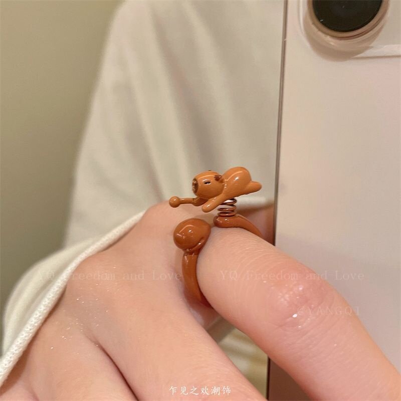 原创小众趣味卡通动物开口戒指女可爱设计感创意可旋转指环食指戒