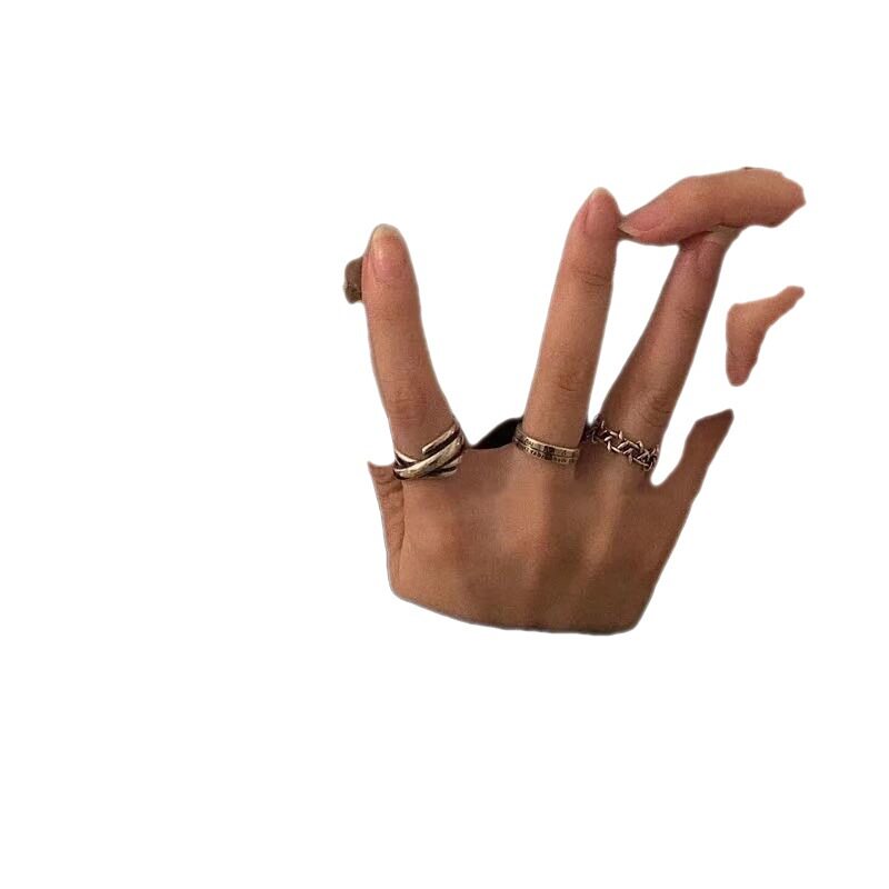 做旧复古多层交叉线条中性风缠绕开口戒指个性简约韩版热卖款
