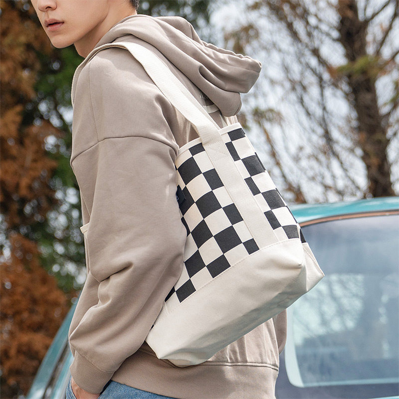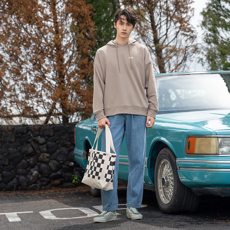 Vans范斯官方 男女情侣挎包单肩包米白色棋盘格大容量