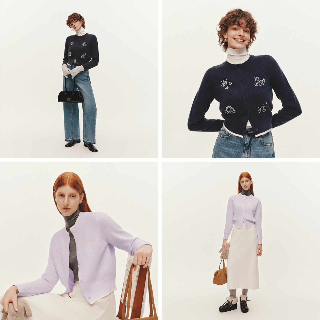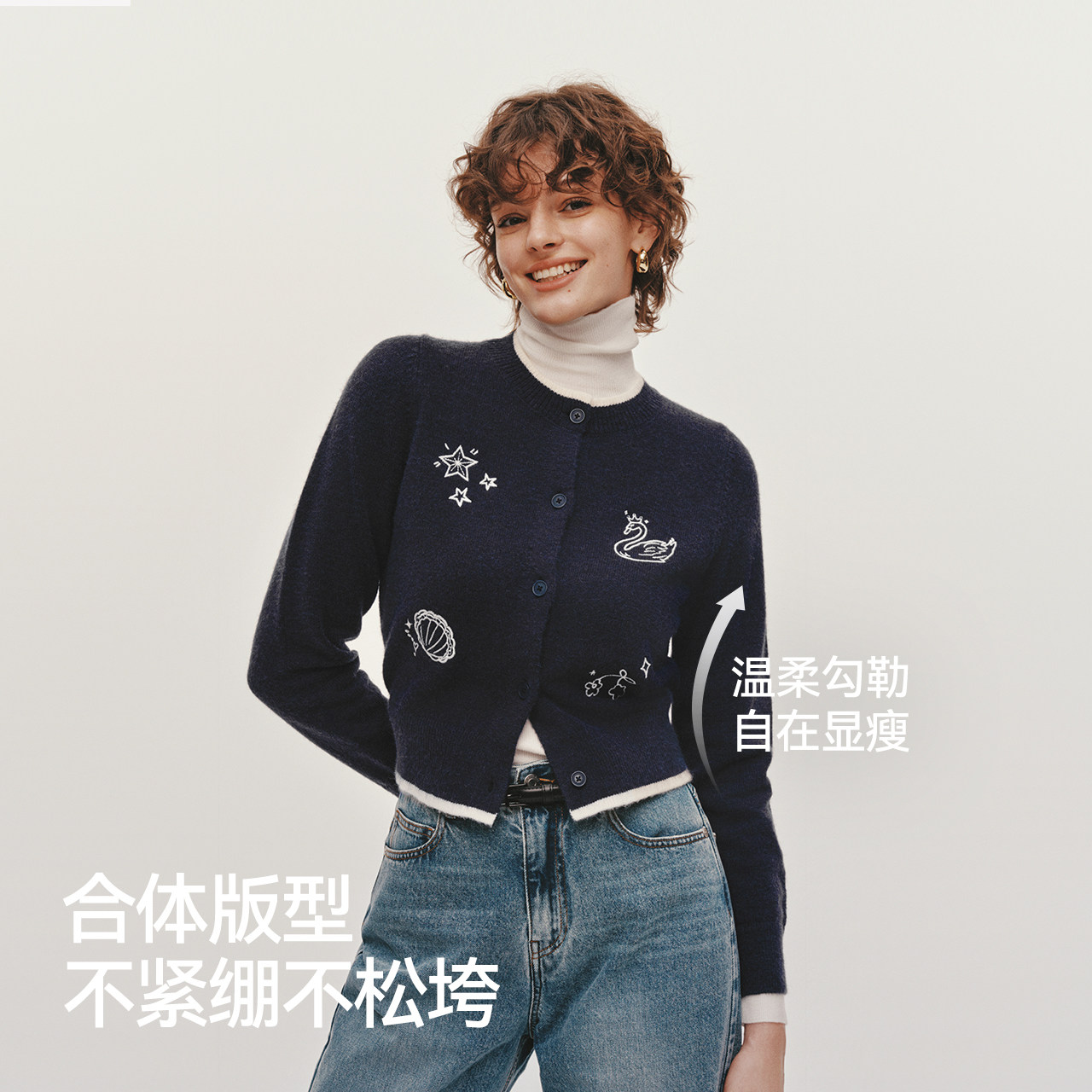 陈都灵同款森马针织衫女冬季短款绣花毛衣假两件2025新款小众上衣