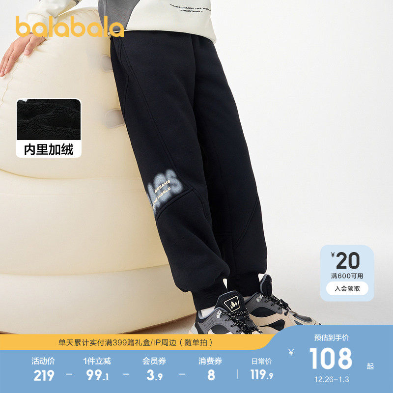 巴拉巴拉童装儿童裤子男童秋冬装卫裤加绒长裤潮加绒保暖加厚休闲