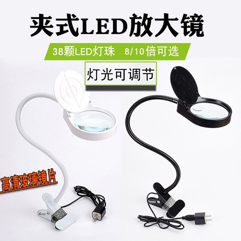台式放大镜手机维修220V高清台灯放大镜铁夹式带led灯110V 放大镜