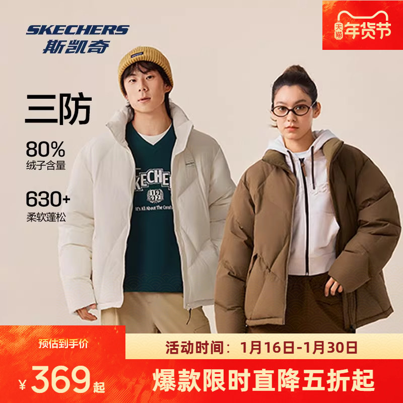 斯凯奇短款三防羽绒服冬季男女棉服加厚保暖防风休闲羽绒运动外套