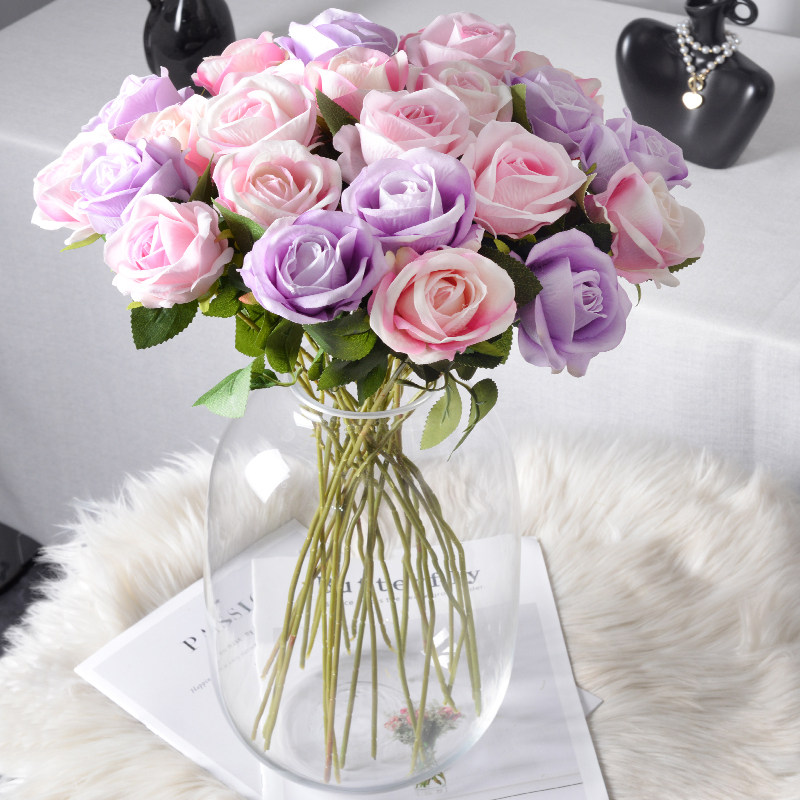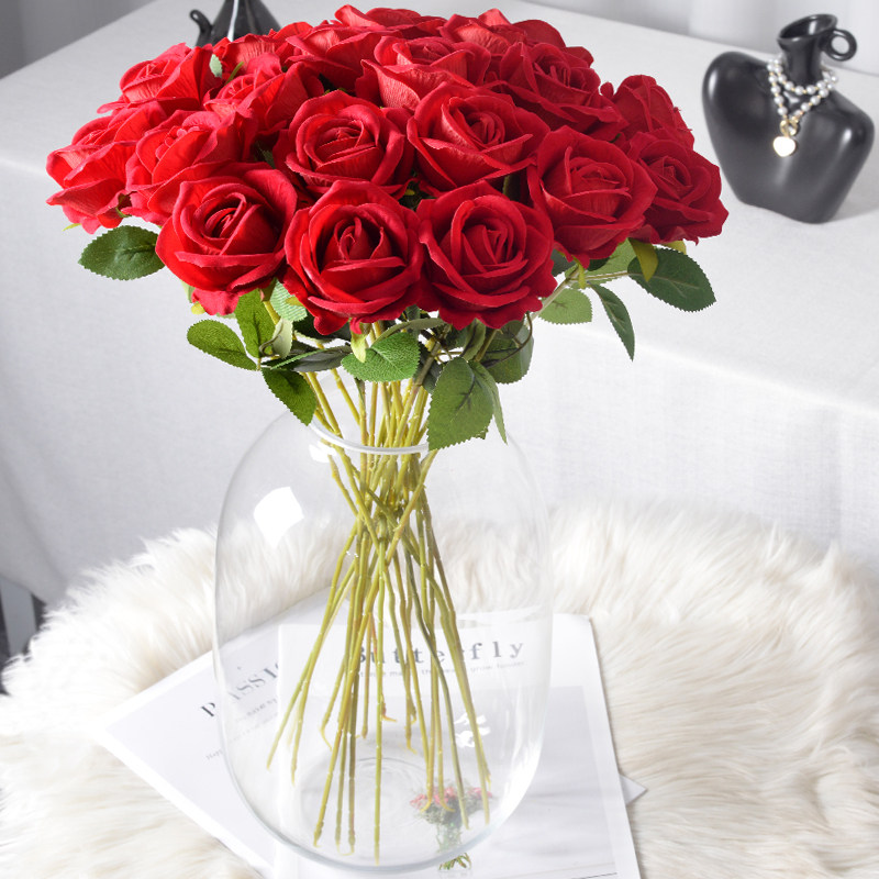 仿真玫瑰花单支绒布玫瑰仿真花装饰假花摆放红色高级落地氛围花卉