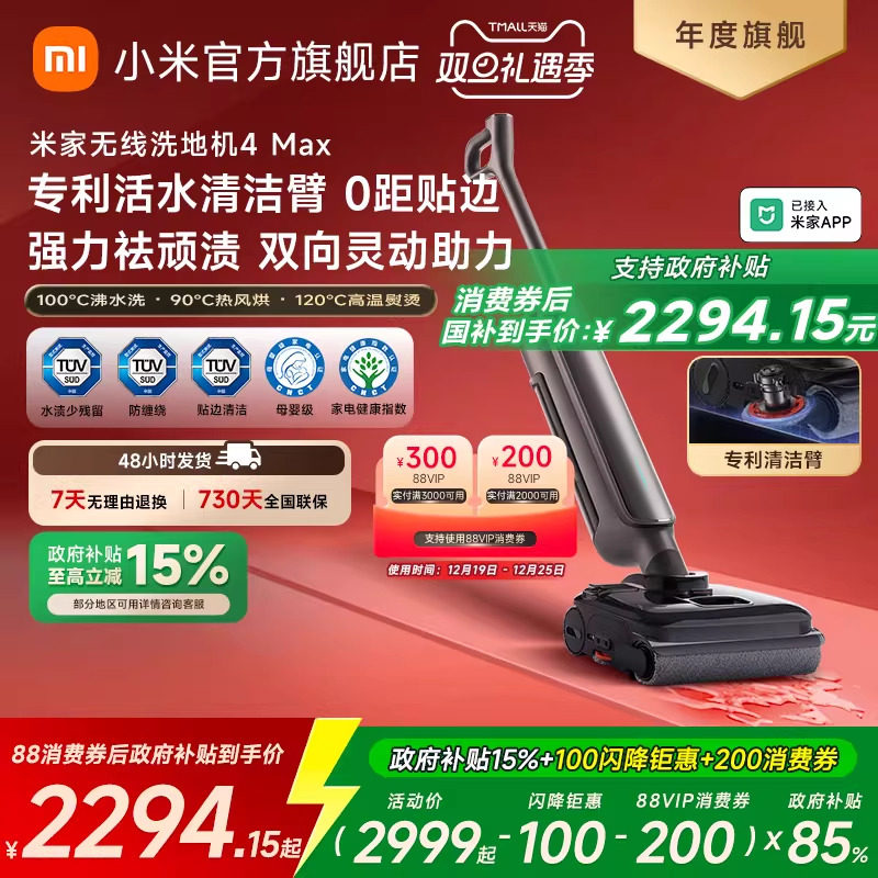 【全国国补15%】米家无线洗地机4Pro/4Max躺平双贴边防缠绕