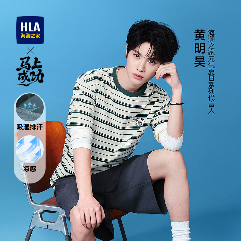 HLA/海澜之家撞色条纹短袖T恤26春夏圆领时尚字母绣花打底短t男