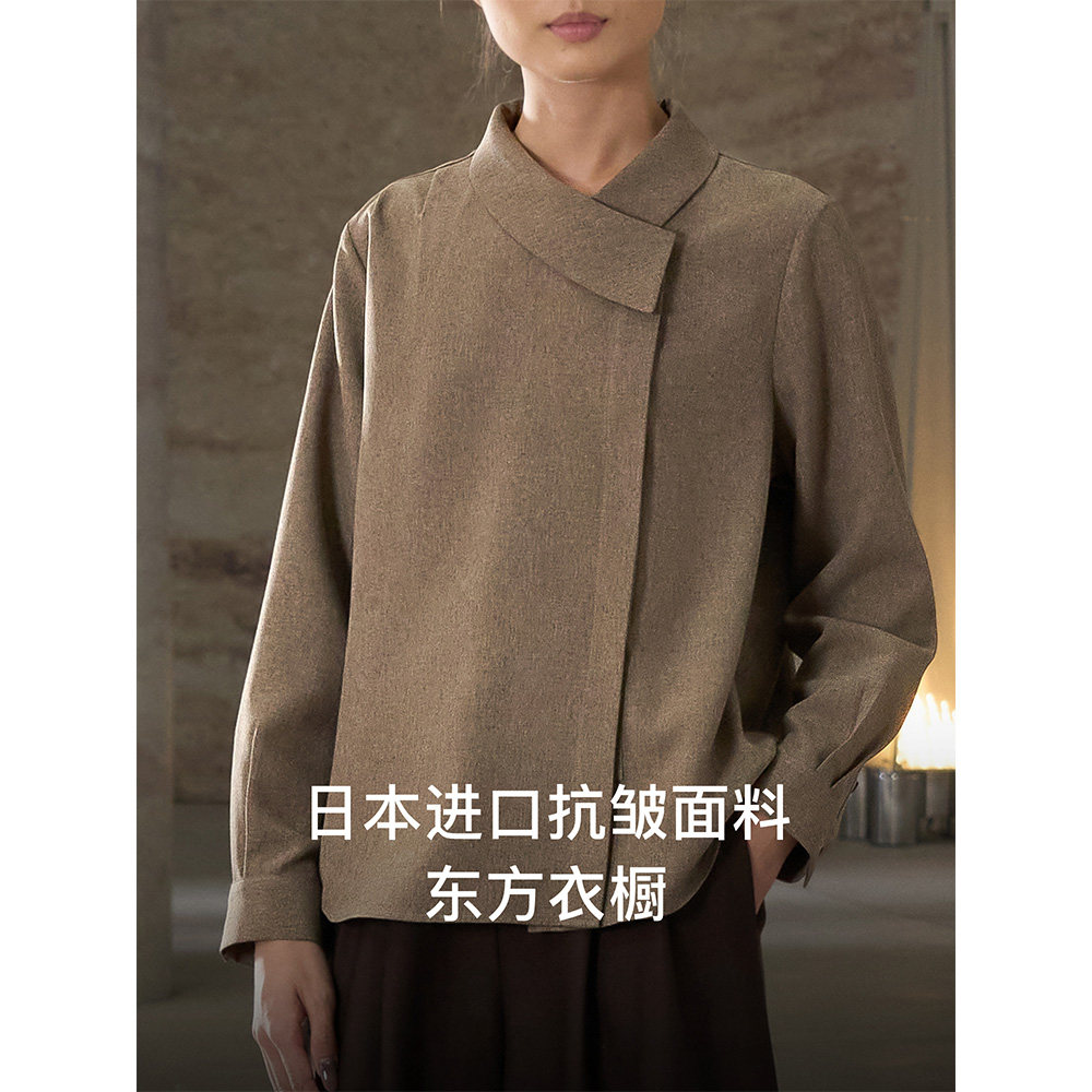 「鹦鹉梨」COMMON VALUE中式翻领衬衫斜襟长袖上衣24D120102