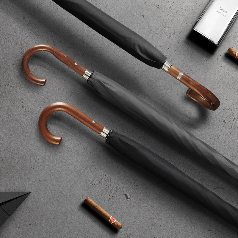 OLYCAT高端复古木弯柄10骨加大加固直杆伞半自动长柄男士商务雨伞