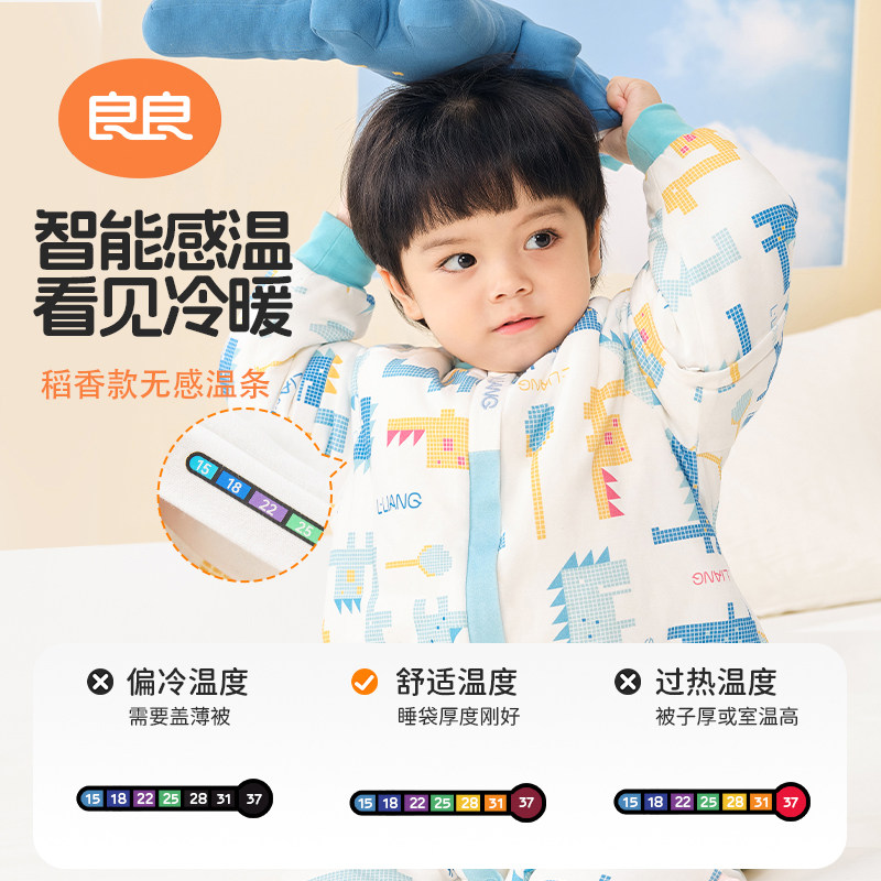 良良婴儿抗菌恒温秋冬分腿睡袋厚夹棉儿童空调房防踢被