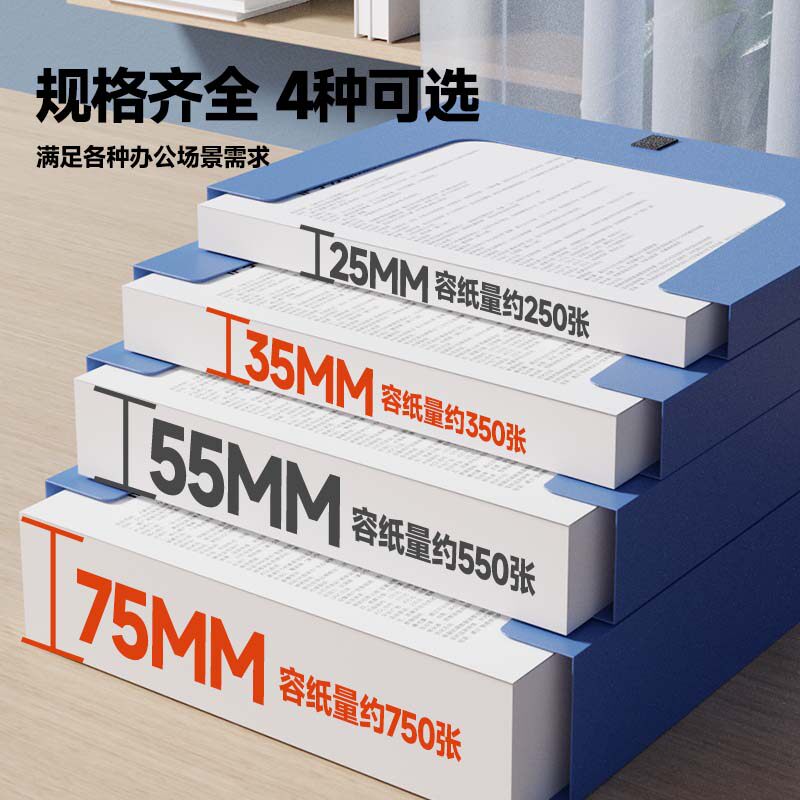 晨光加厚折叠档案盒55mmA4文件夹文件盒粘扣加厚塑料资料盒收纳办公用品资料册会计凭证人事整理盒子标签盒